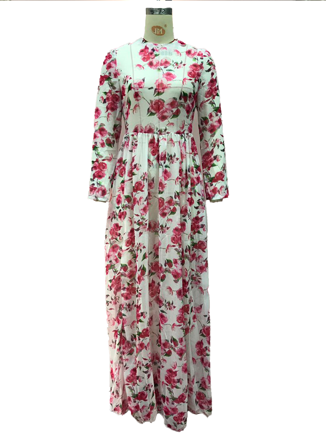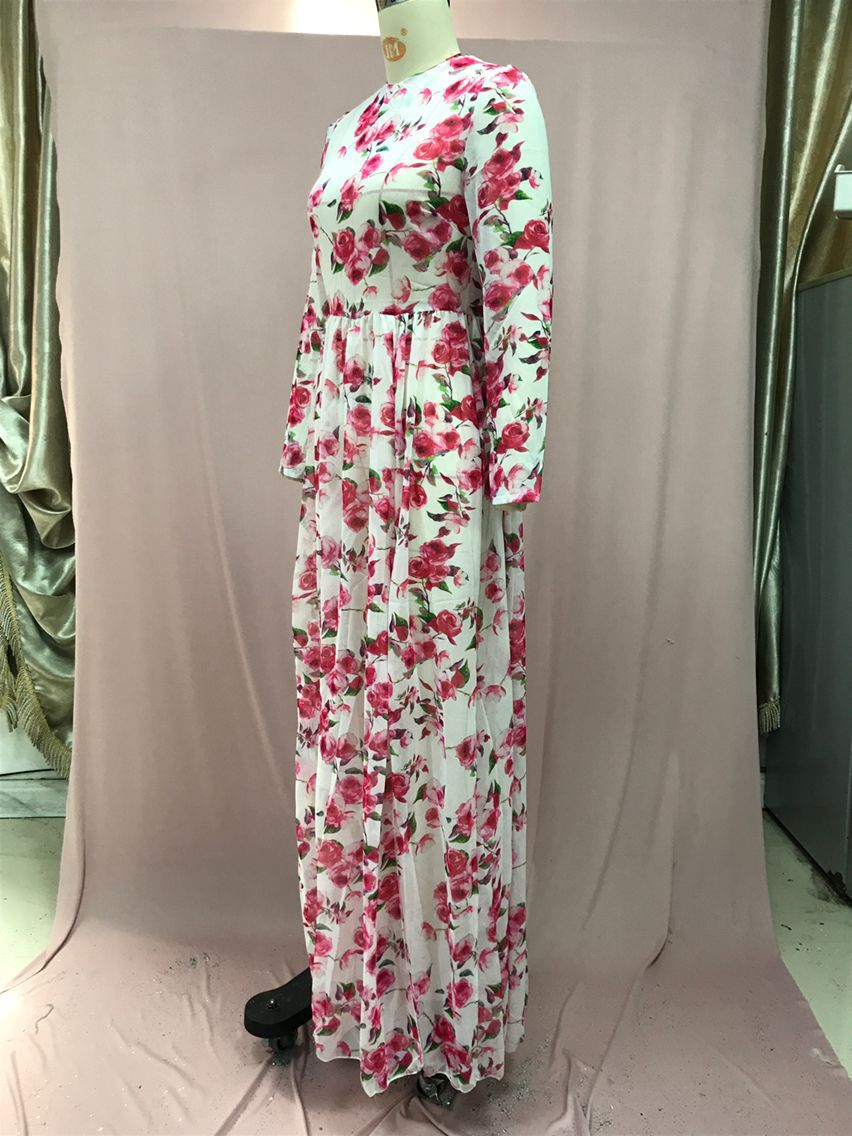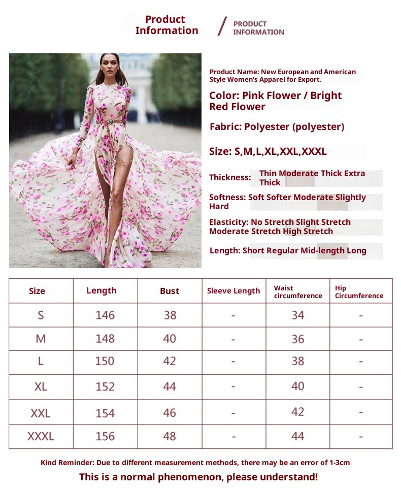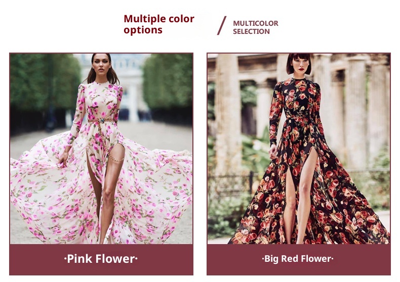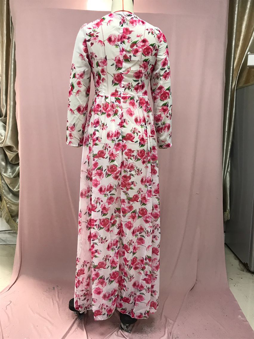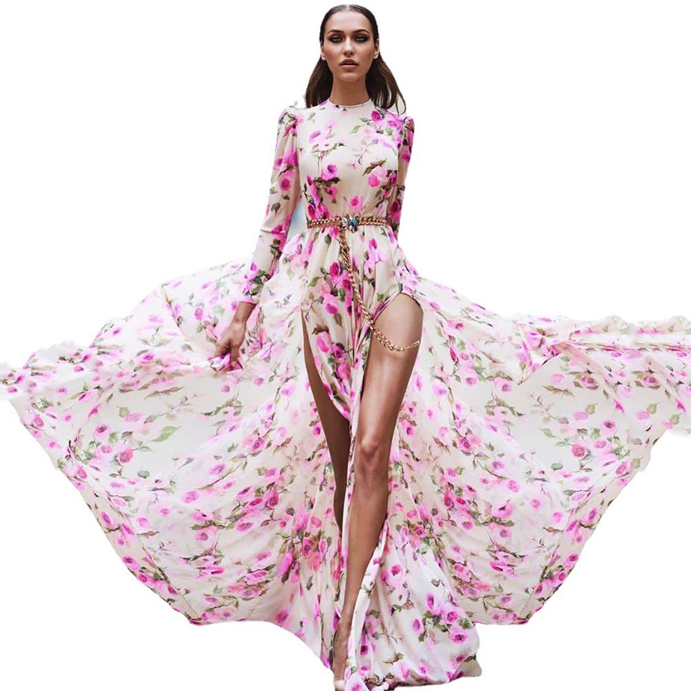 2025 New European And American Foreign Trade Women's Clothing Amazon Printed Large Swing Dress Slit Fashionable Long Dress Beach Dress