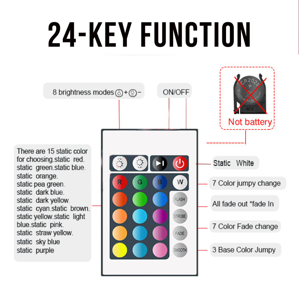 Color temperature: Bluetooth controller + 24-key remote control + adapter + light strip, Bluetooth controller + 44-key remote control + adapter + light strip, infrared controller + 24-key remote control + adapter + light strip, infrared controller + 44-key remote control + adapter +Light strip,wifi controller+24 keys+adapter+Light strip,