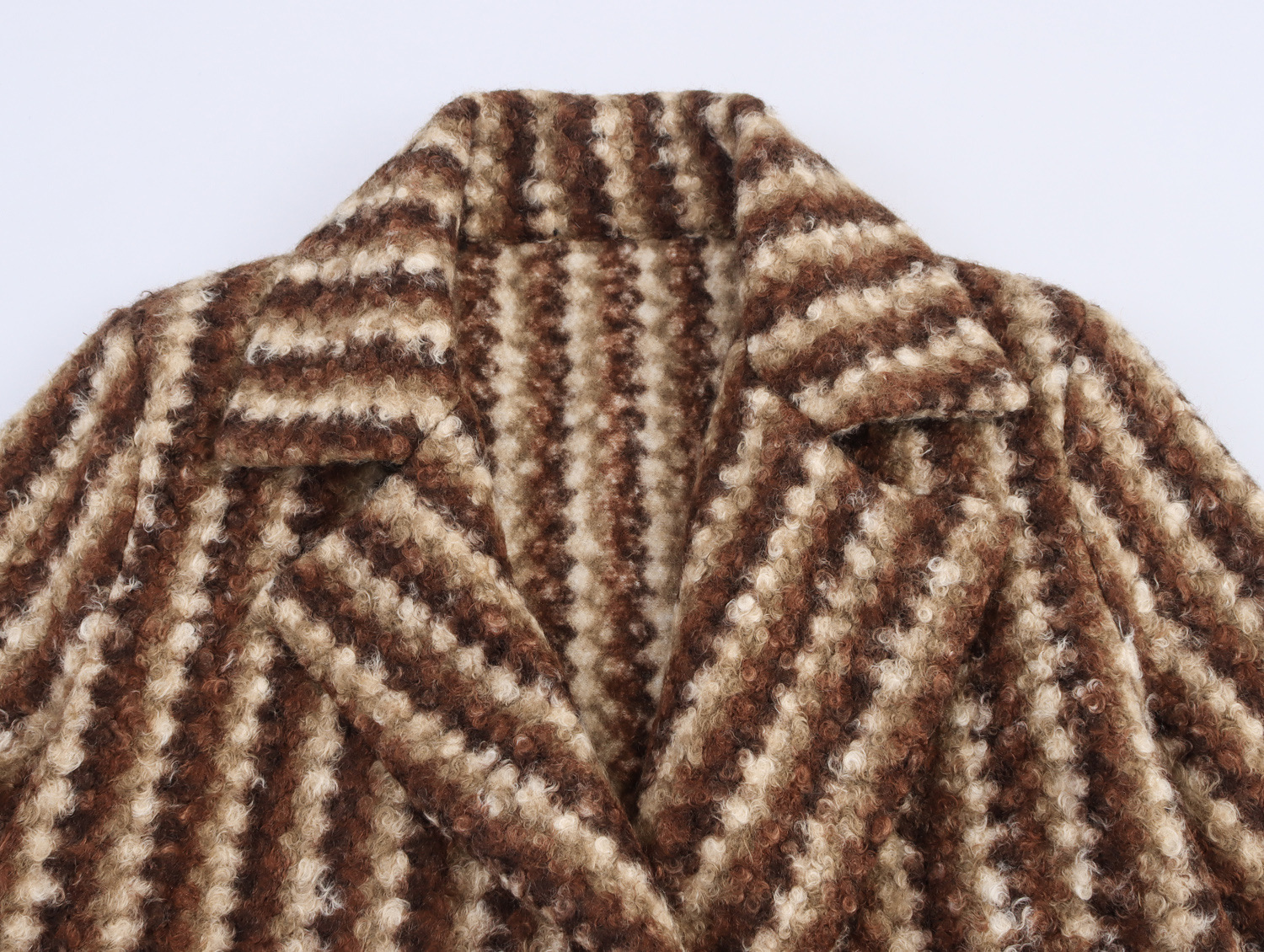 Autumn And Winter Women's British Style Woolen Striped Wide Coat