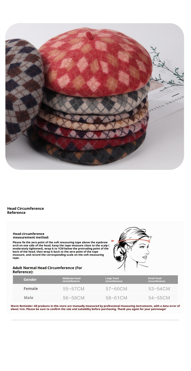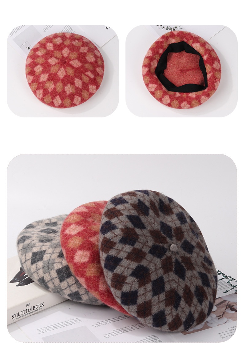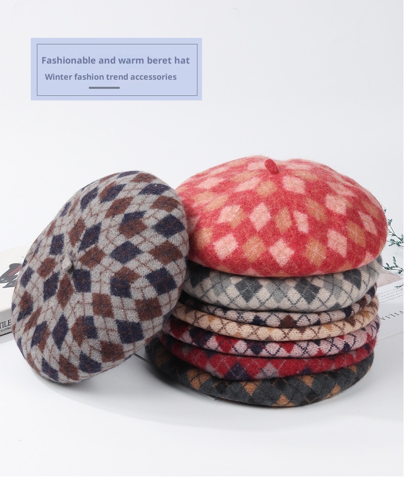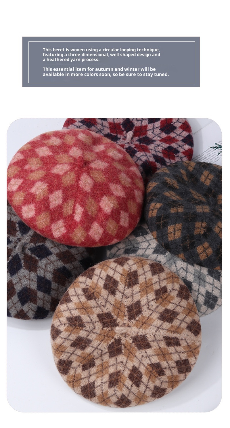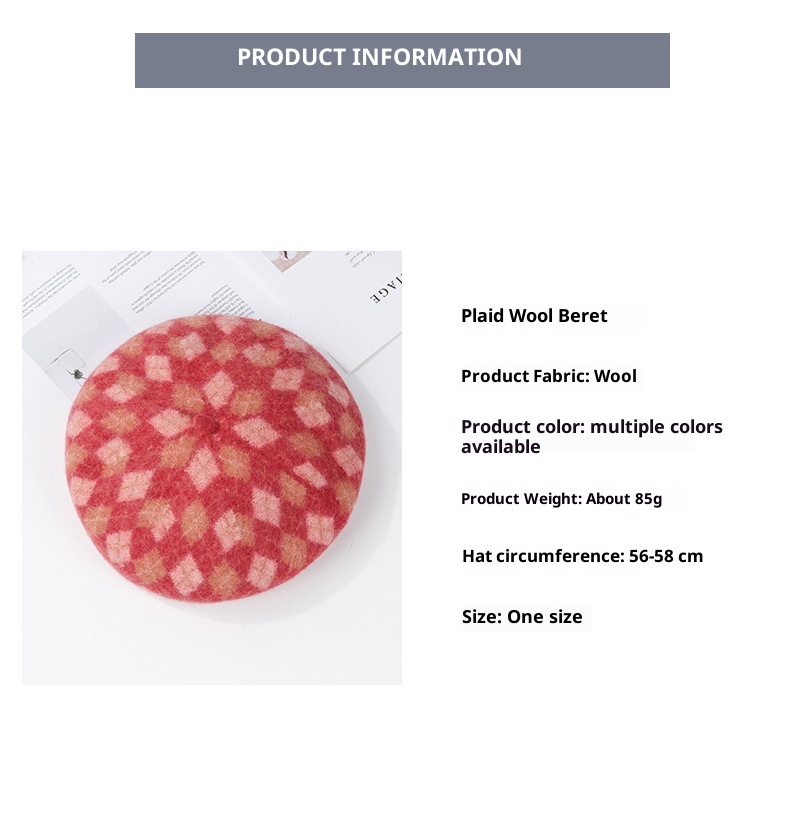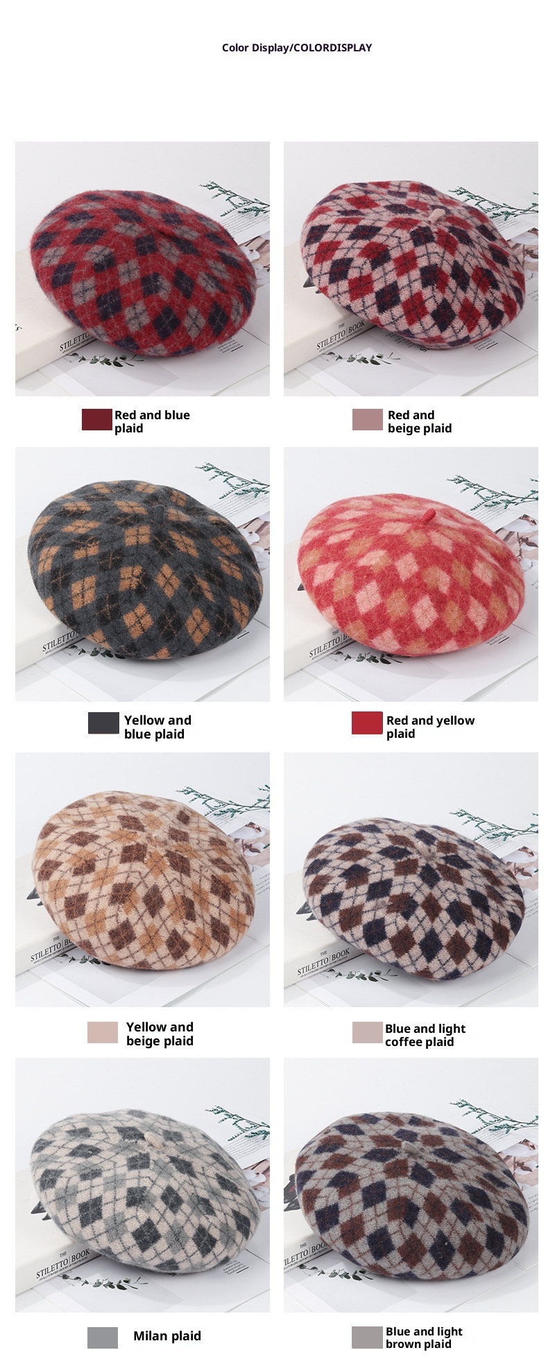 Autumn And Winter Wool Plaid Beret Retro Easy Matching Woolen