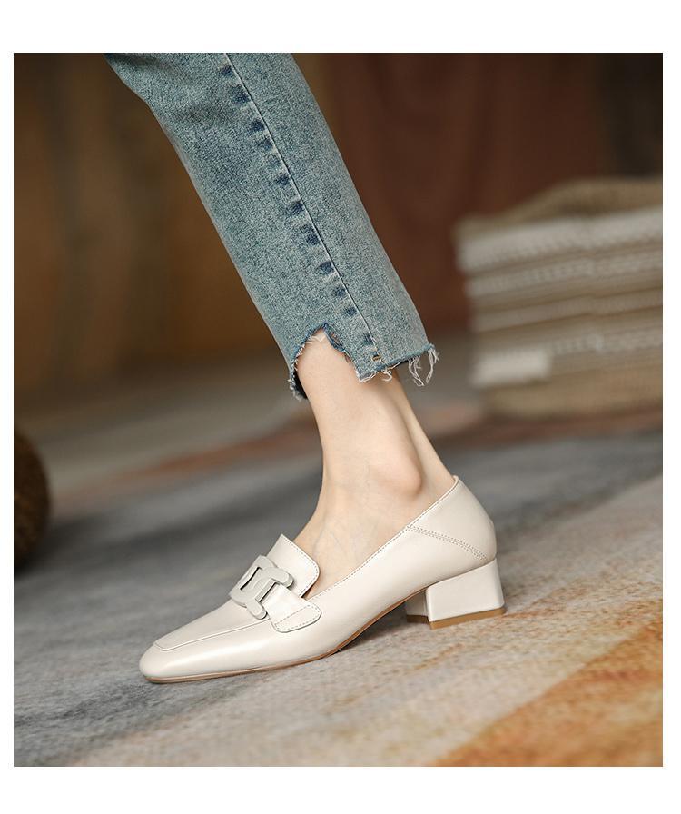 British Style Chunky Heel Pumps One Pedal Loafer Women's Mid Heel