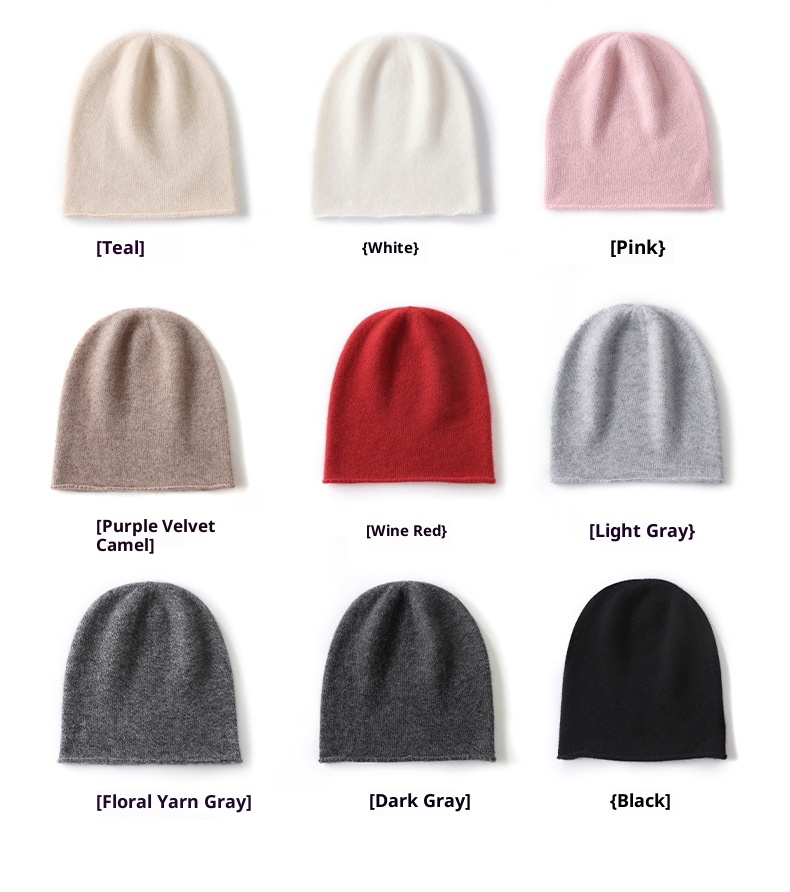 Cashmere Hat For Women Curled Brim Knitted Hat