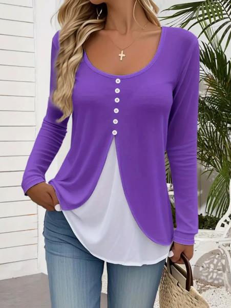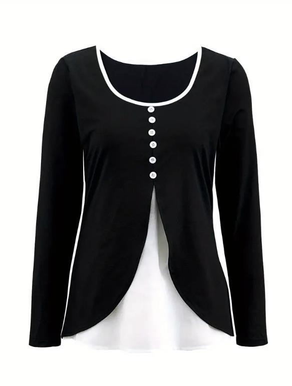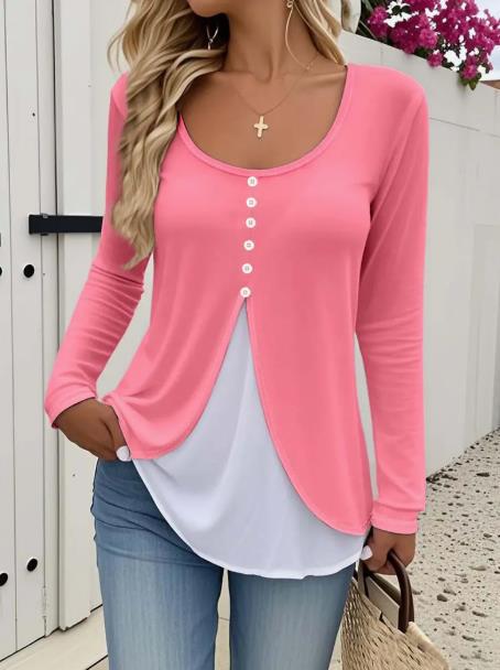 Casual Contrast Color Women's Two-piece Long-sleeved T-shirt