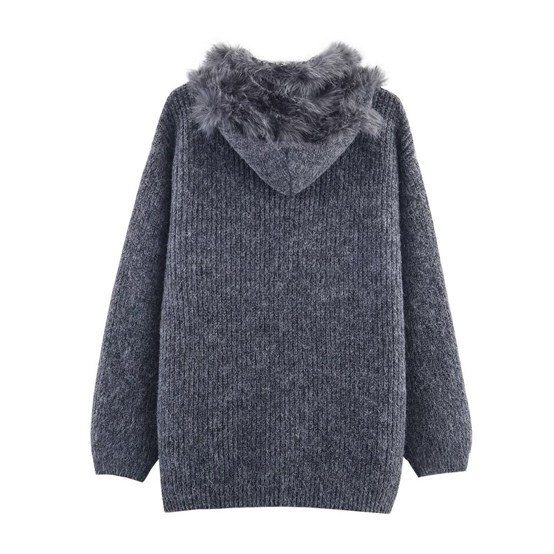 Cool Strap Decorative Hoodie Horn Button Knitted Coat