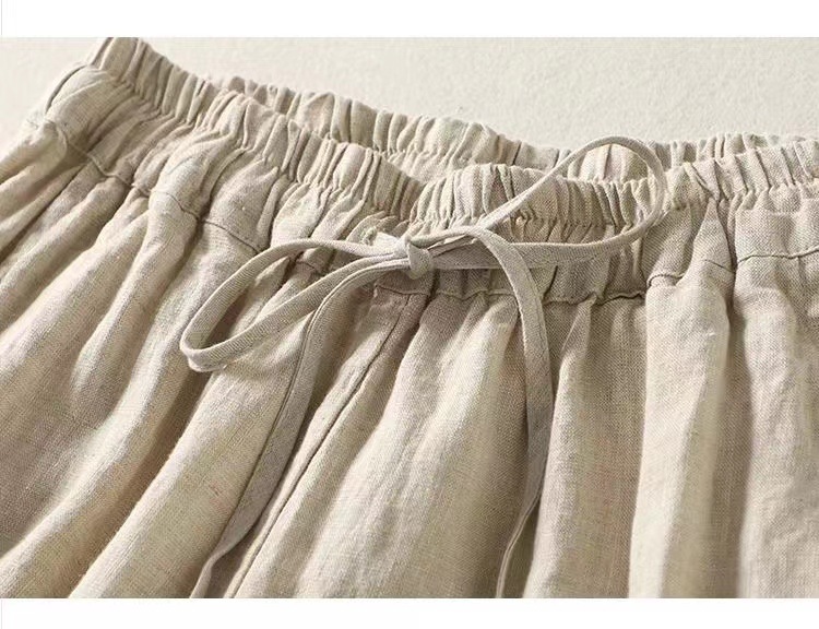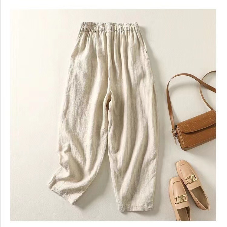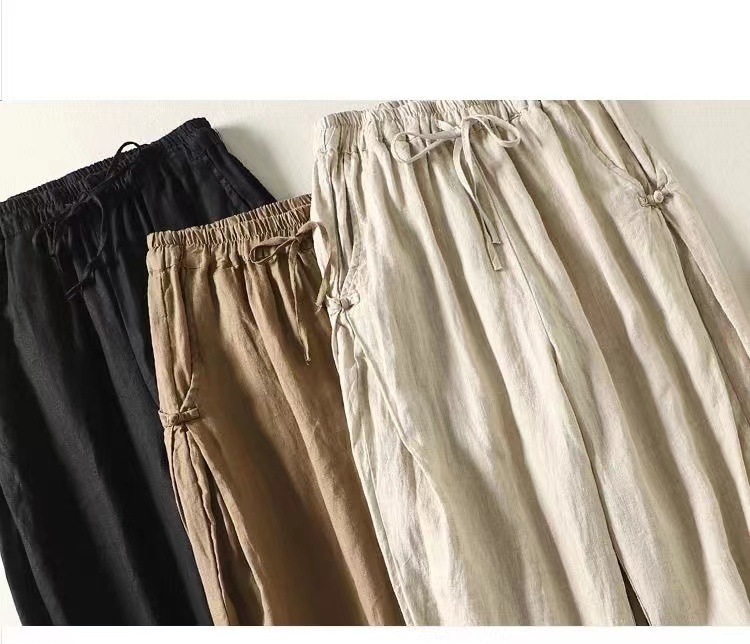 Cotton Cropped Pants Loose Thin Buckle High Waist Lace Up Casual Harem Pants
