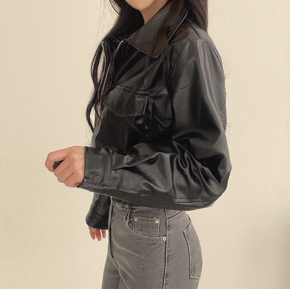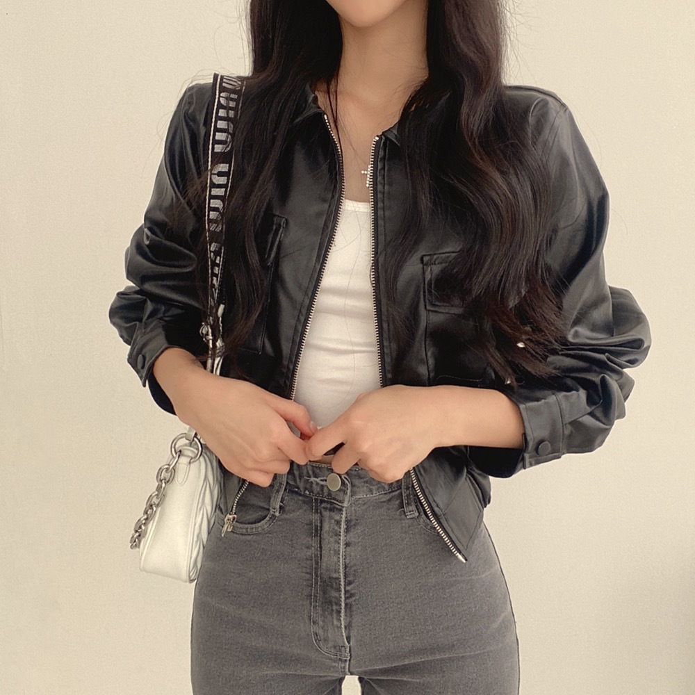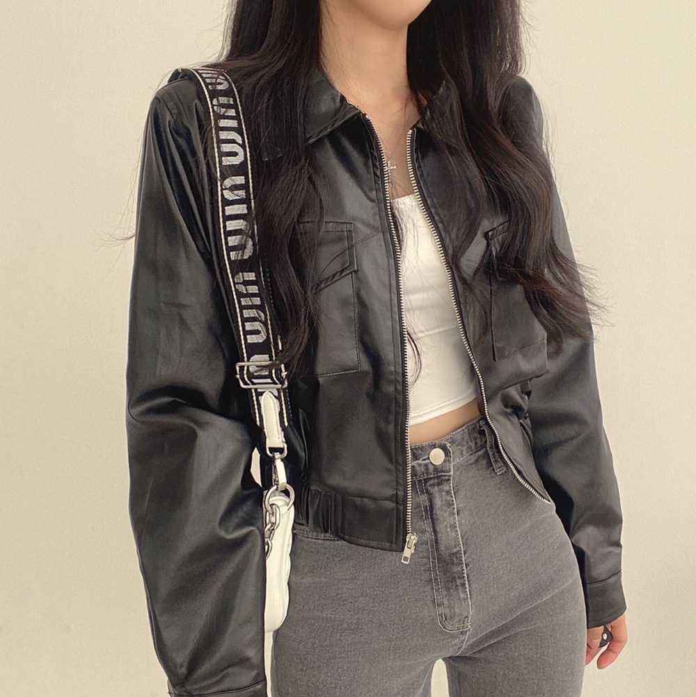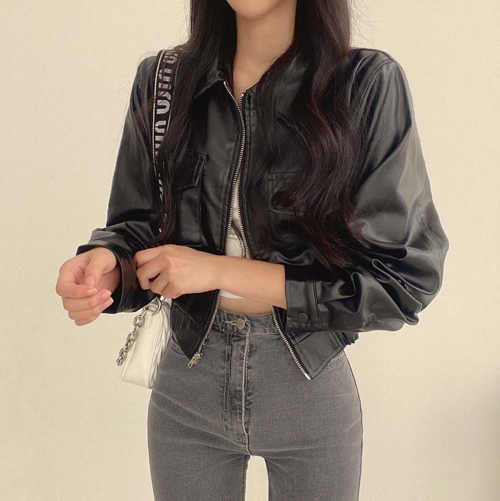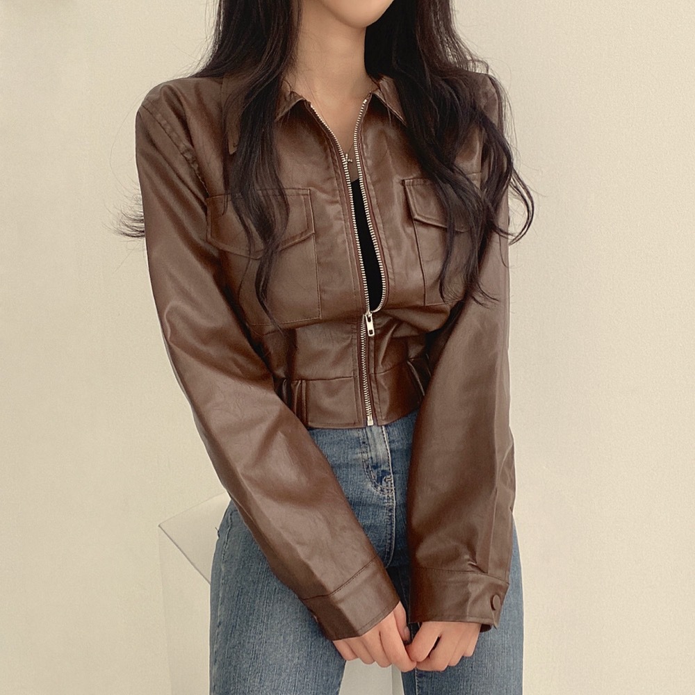Double Pocket Lapel Leather Coat Leather Jacket Coat