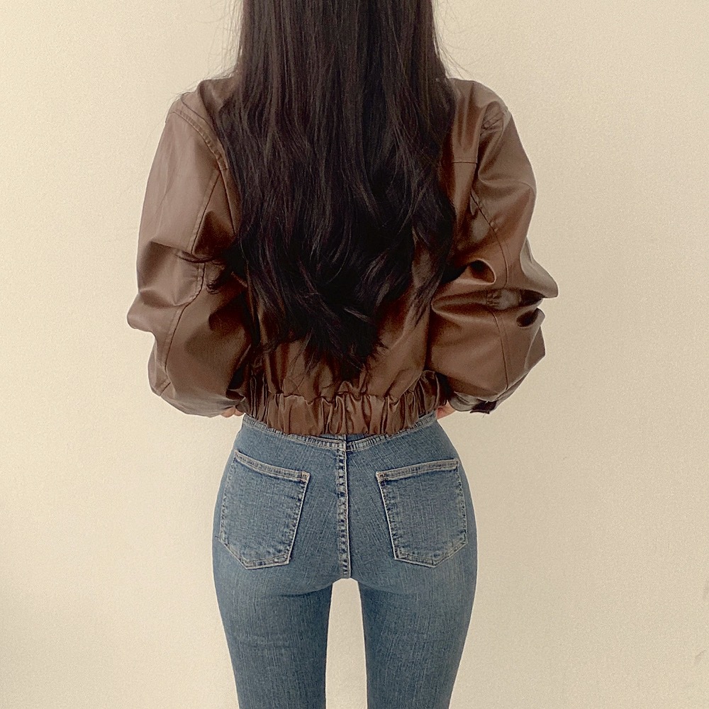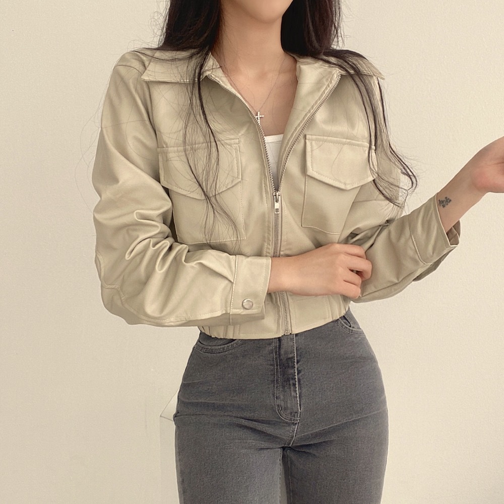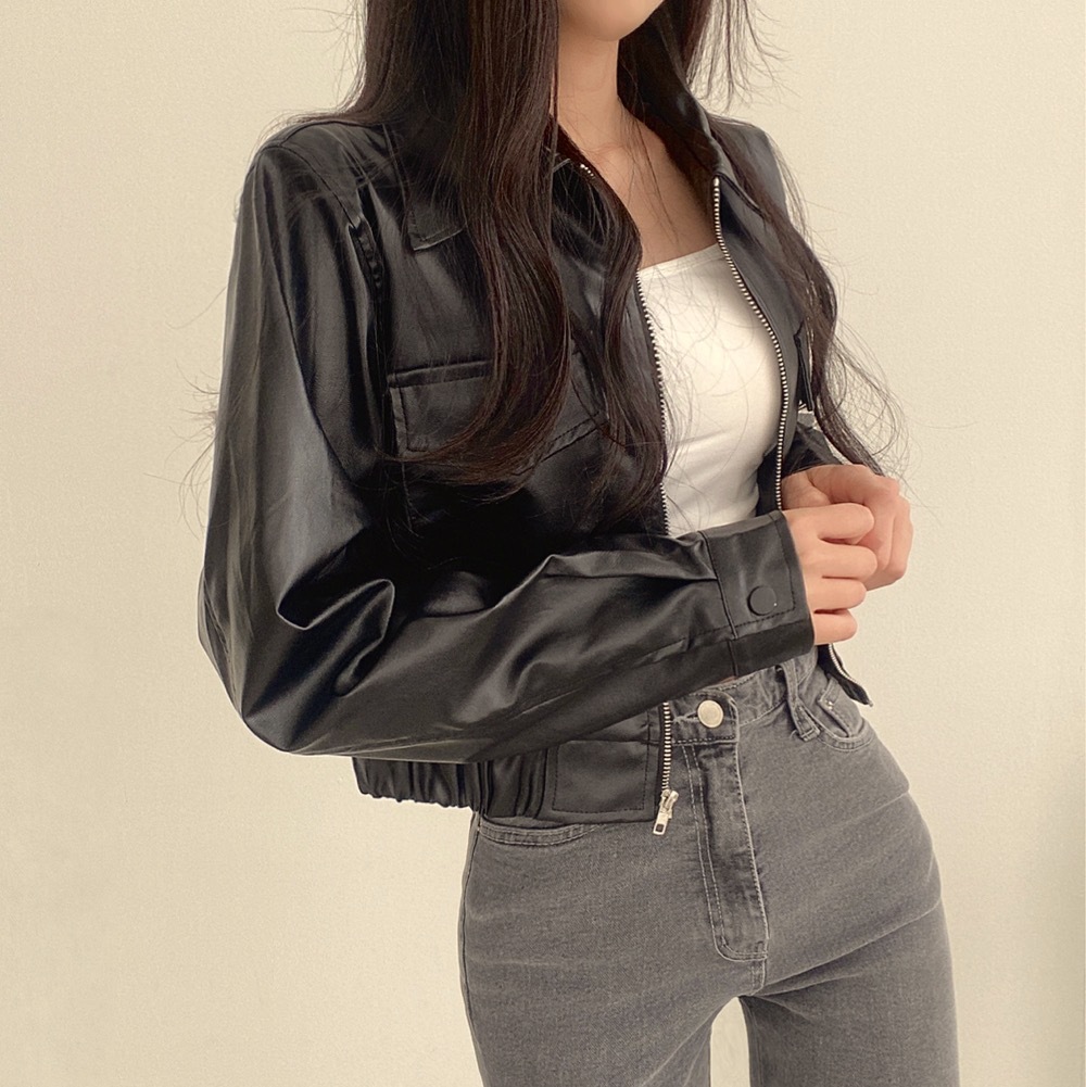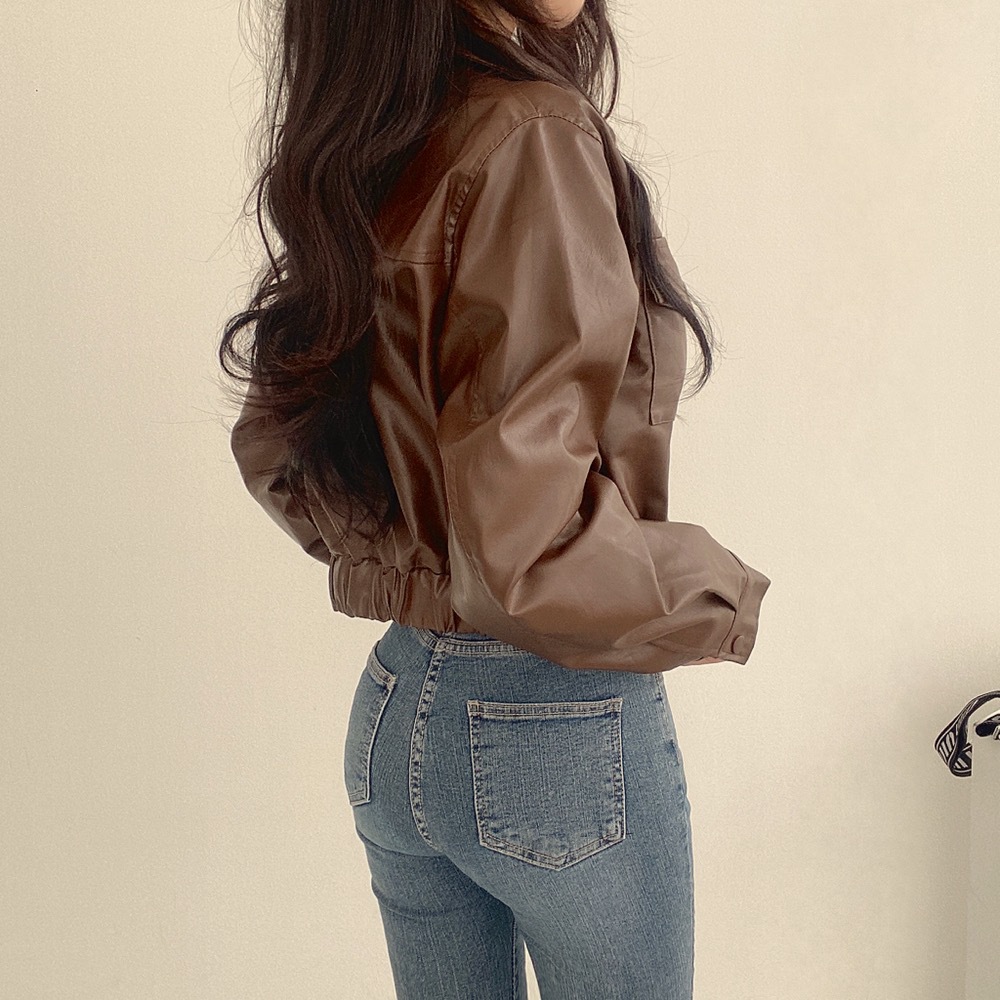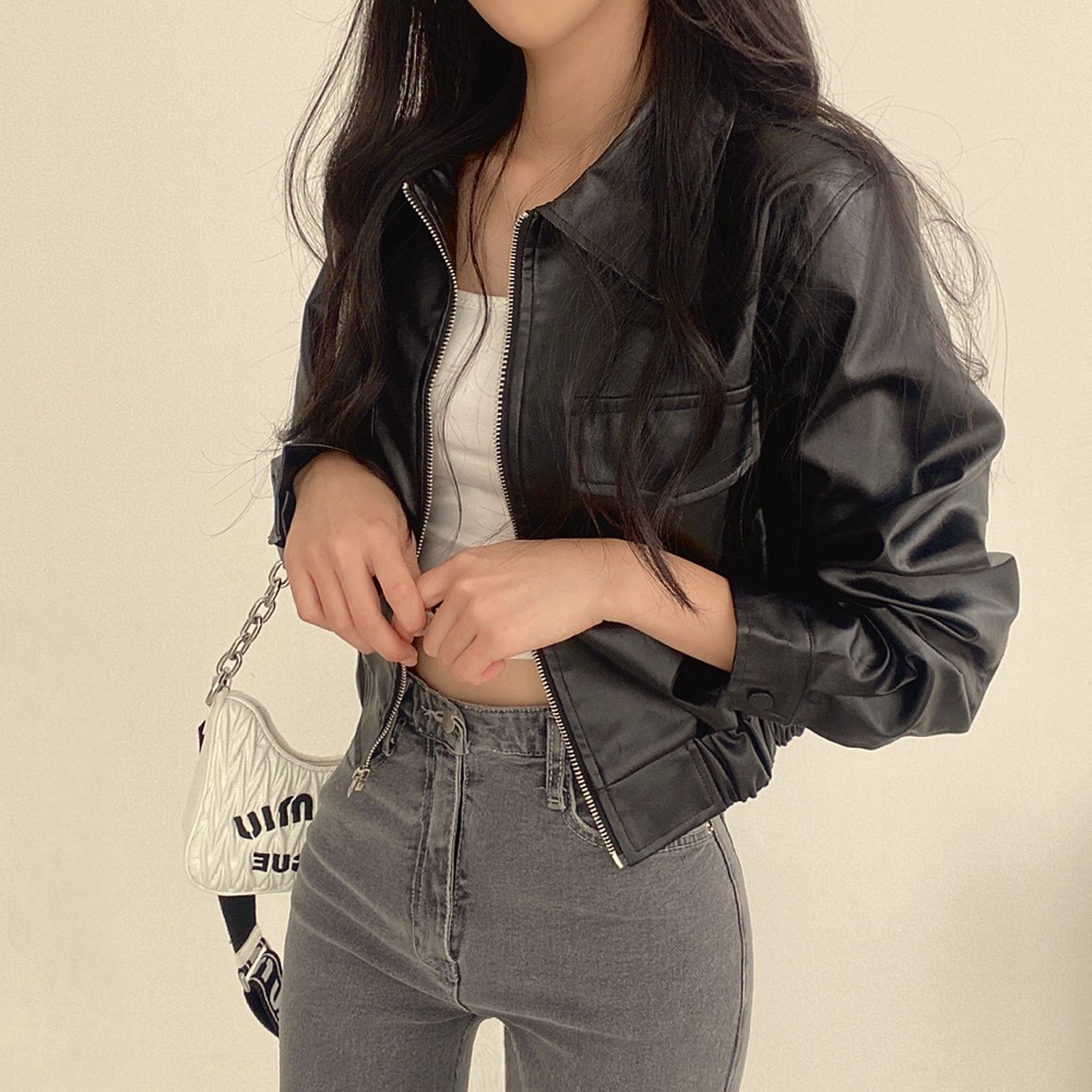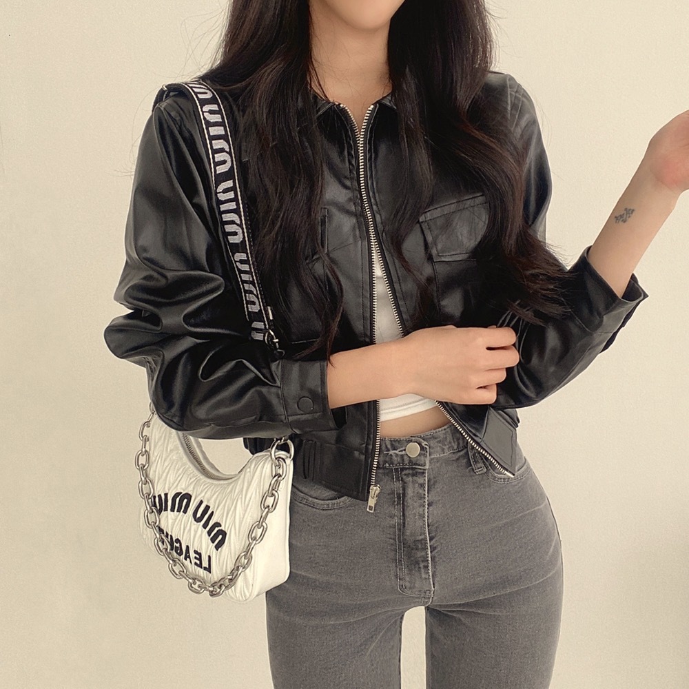 Double Pocket Lapel Leather Coat Leather Jacket Coat