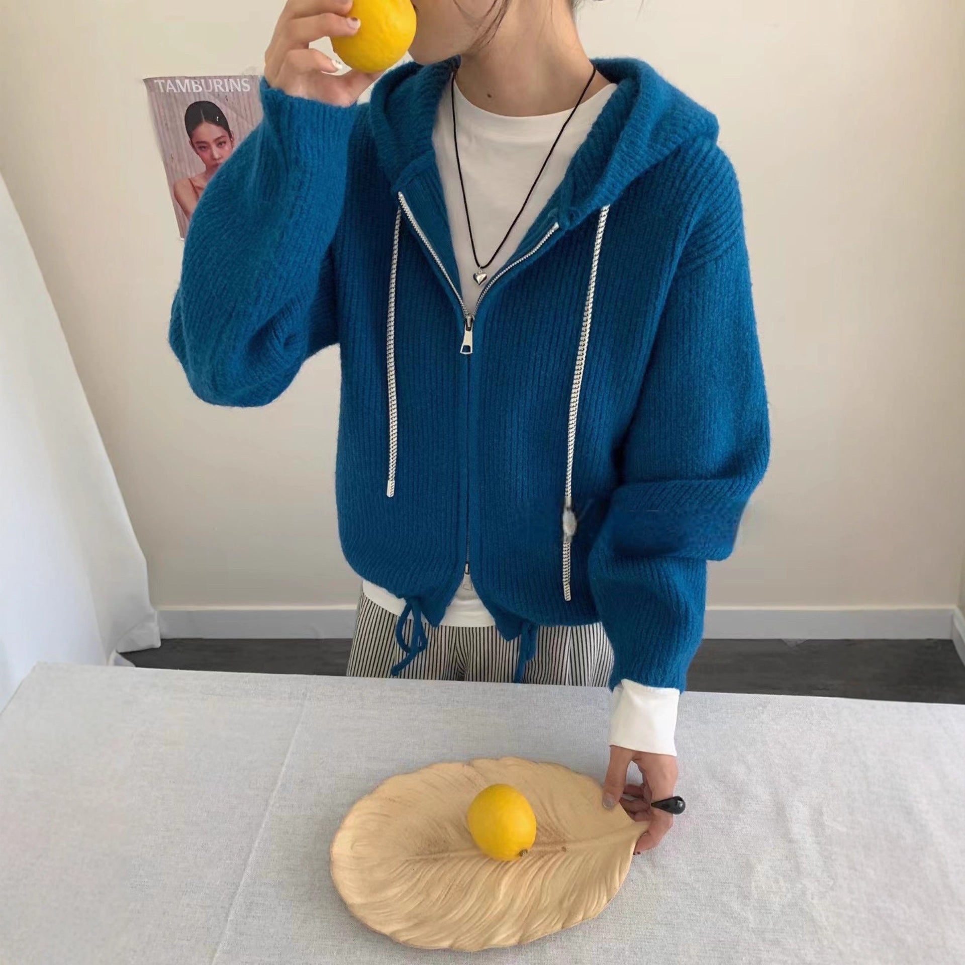 Double Zipper Hooded Knitted Niche Sweater Coat