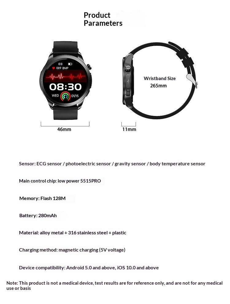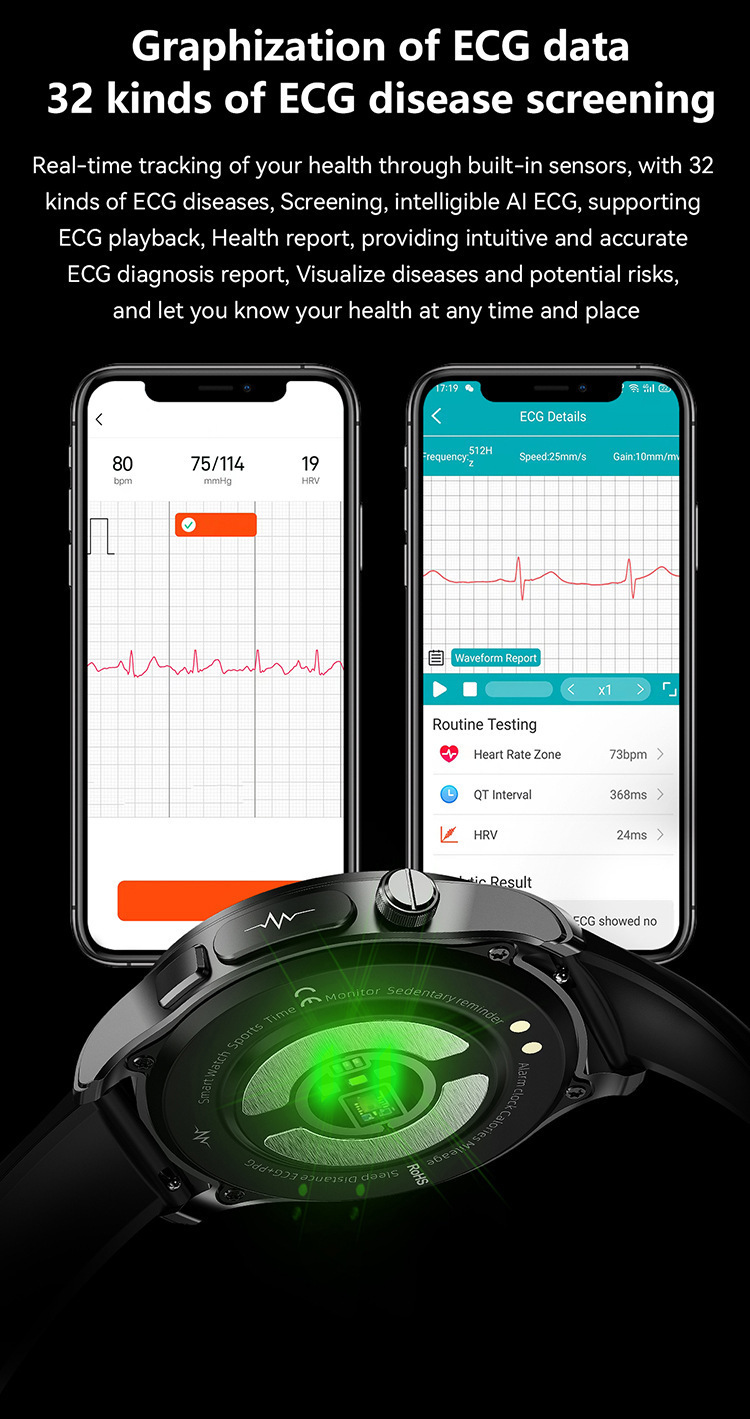E420 Smart Watch Real Heart Rate Temperature Blood Oxygen ECG Information