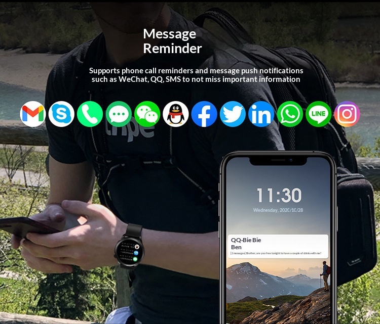 Function: step counting, heart rate monitoring, smart reminder, remote selfie, sleep monitoring