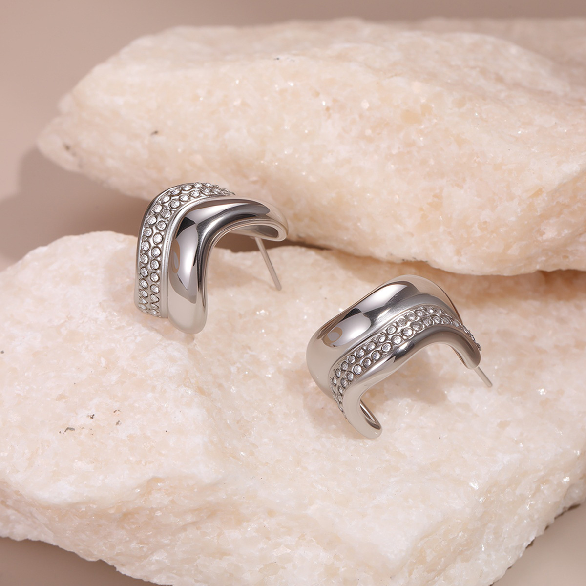Elegant Geometric Diamond Stud Earrings Light Luxury Design Sense