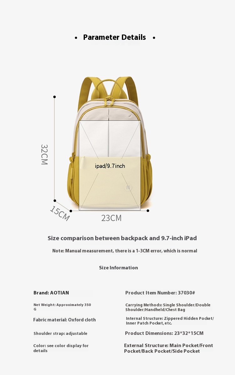 Fashion Outdoor Trendy Women's Bag Contrast Color Backpack
