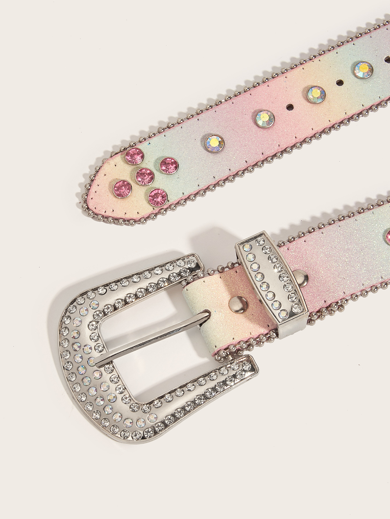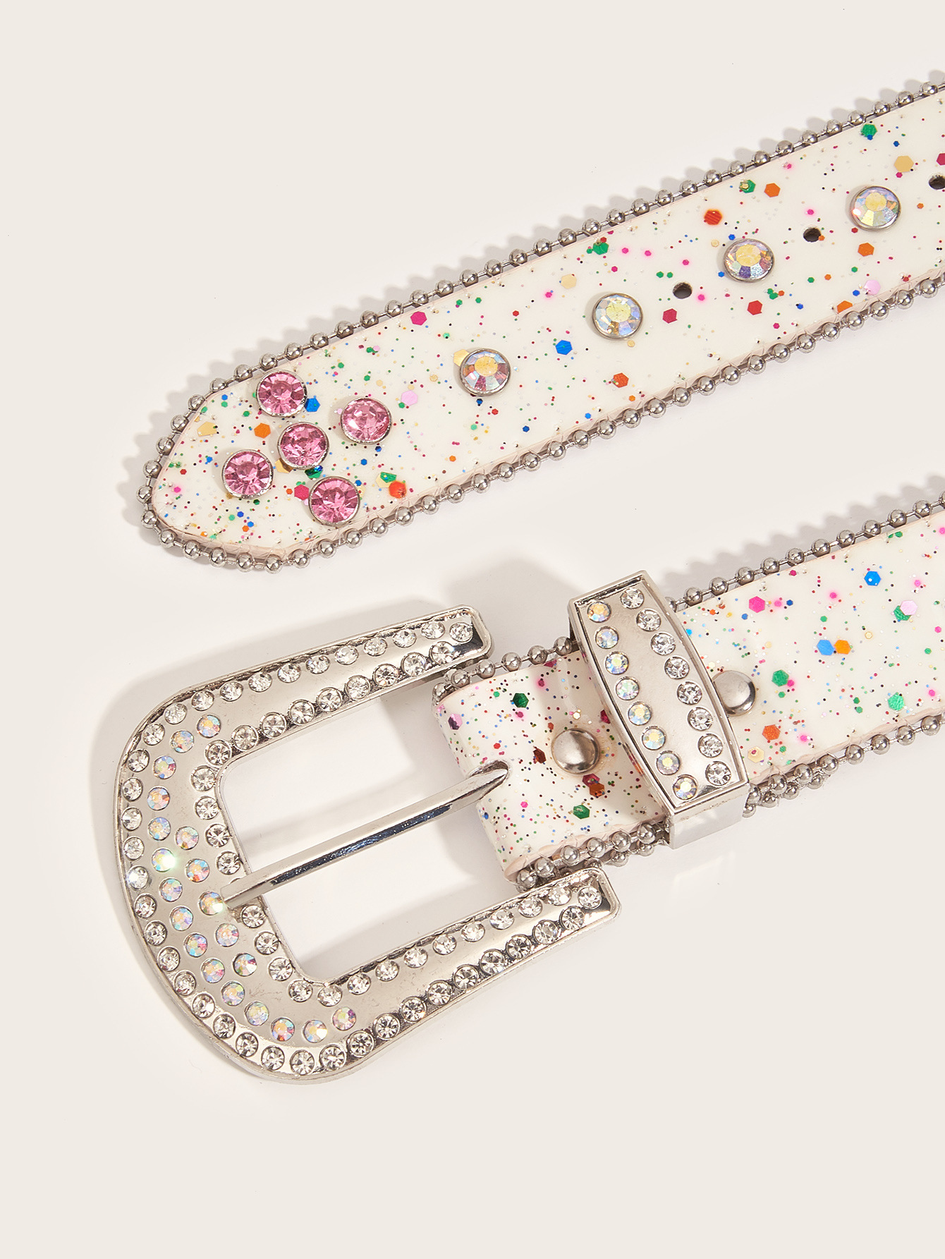Color: two-piece rhinestone beaded white, two-piece rhinestone beaded rainbow color