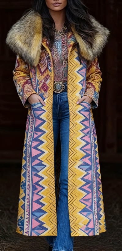 Fashion Retro Women's Coat, Warm Printed Long Coat