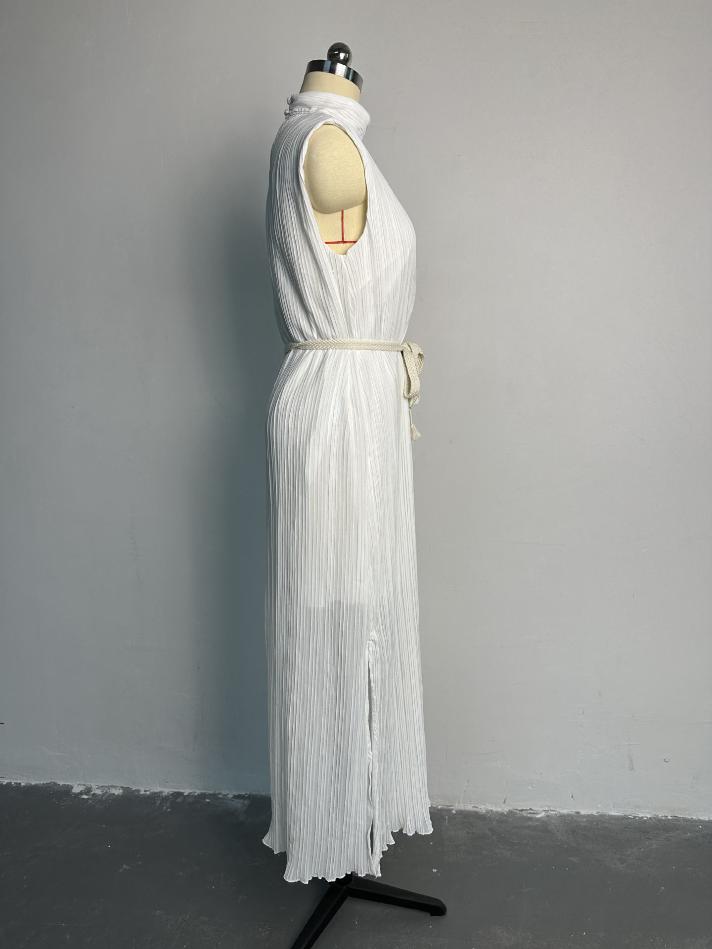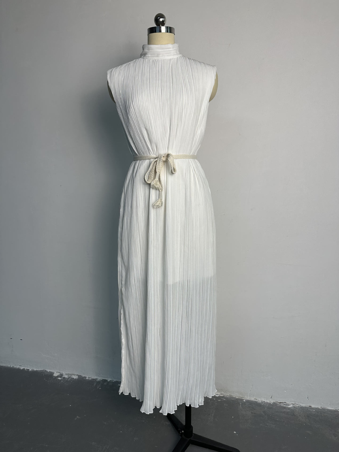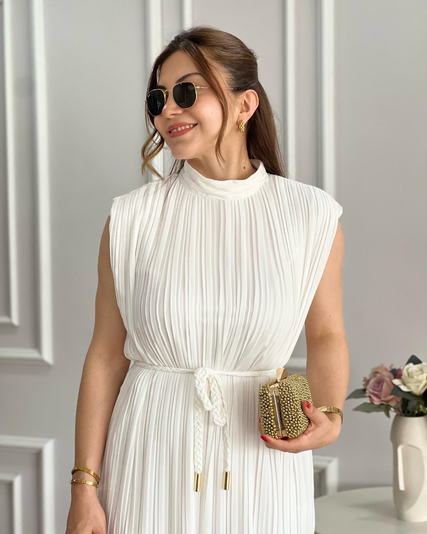 Fashionable Simple Half Turtleneck Waist-controlled Lace-up Midi Dress
