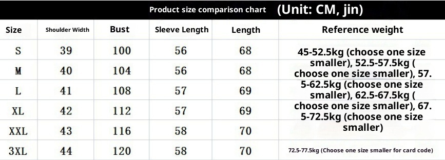Size: S [45.00kg-52.50kg],M [52.50kg-57.50kg],L [57.50kg-62.50kg],XL [62.50kg-67.50kg],2XL [67.50kg-72.50kg], 3XL [72.50kg-77.50kg]]
