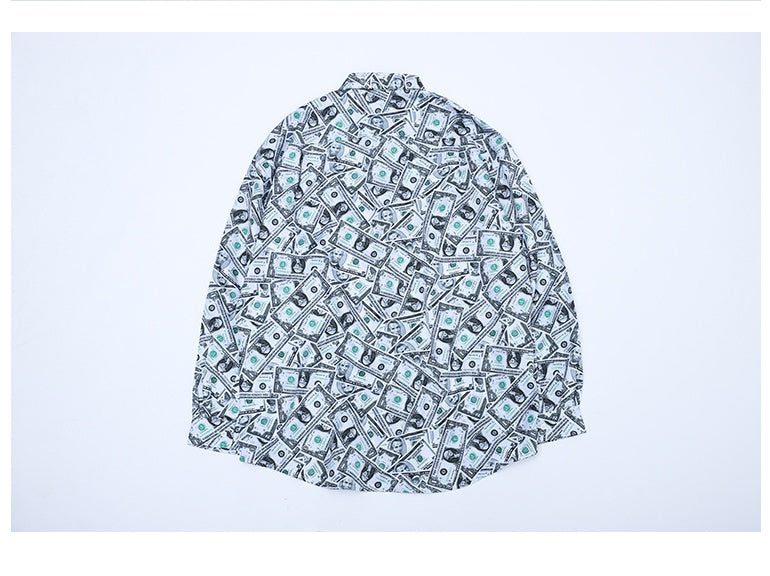 Full-length Print Casual Long-sleeved Men's Shirt Flower Shirt