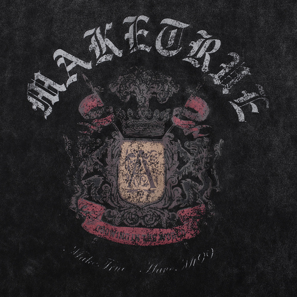 Gothic Letters Distressed Cotton T-shirt For Men