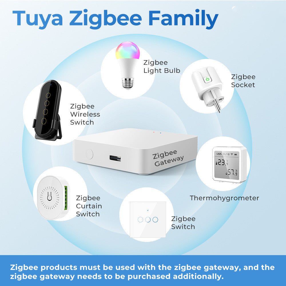 --【 Support for Zigbee+WiFi Products 】 Through the APP settings, users can control Zigbee or WiFi products, including smart sockets, smart switches, smart light bulbs, door magnets, temperature and humidity, and other products