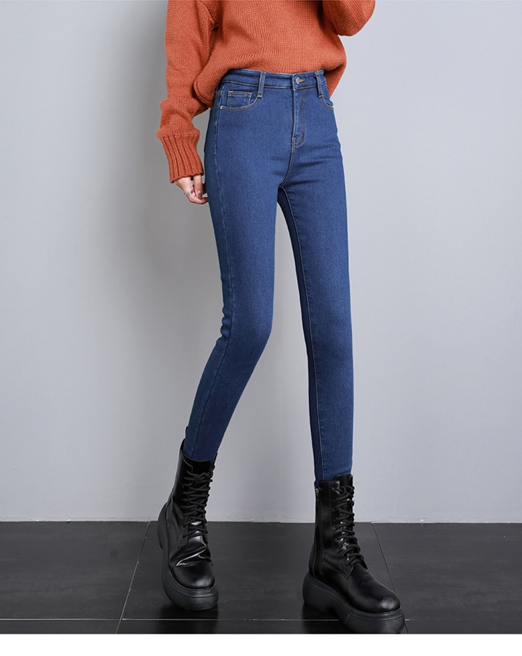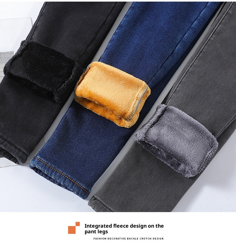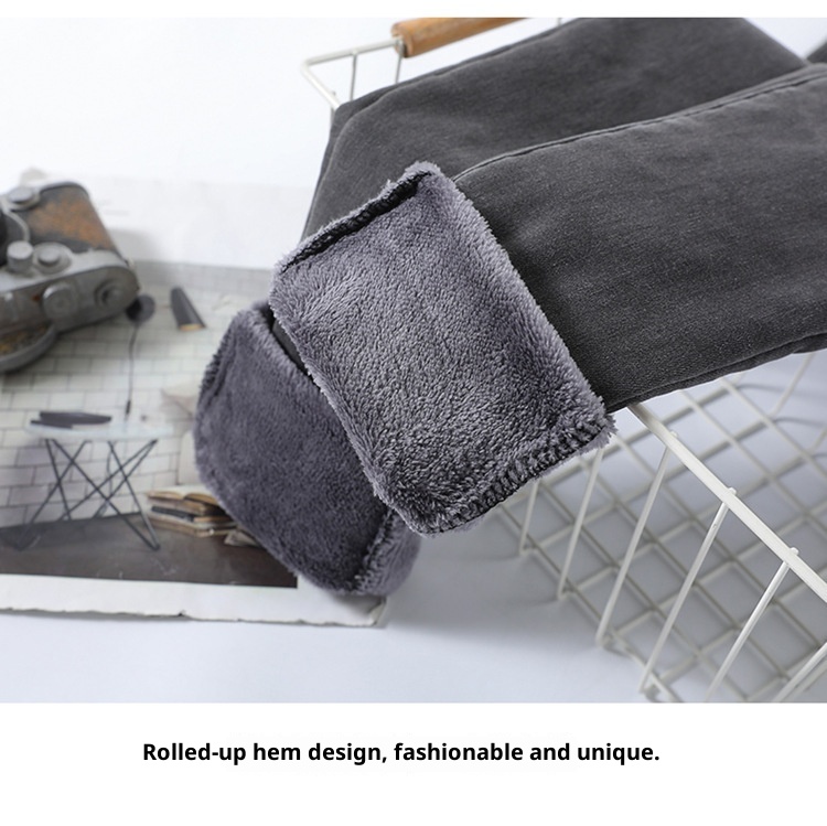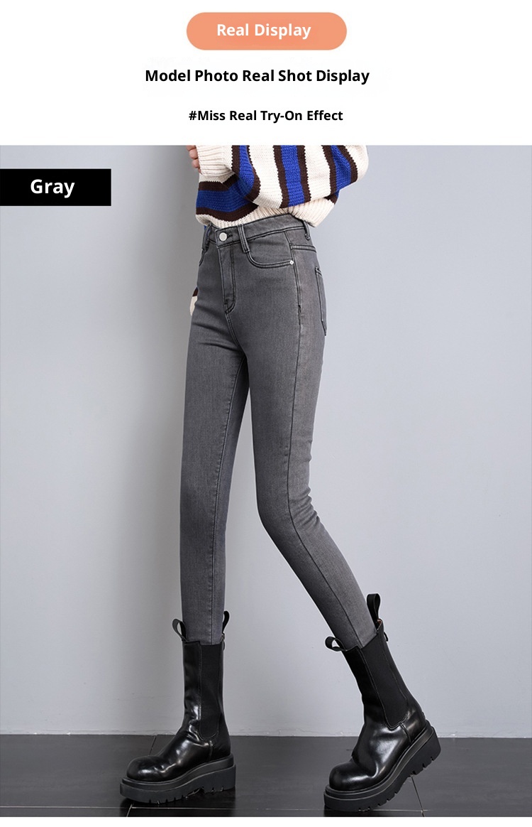 High-looking Smoky Gray High Waist Velvet Padded Jeans