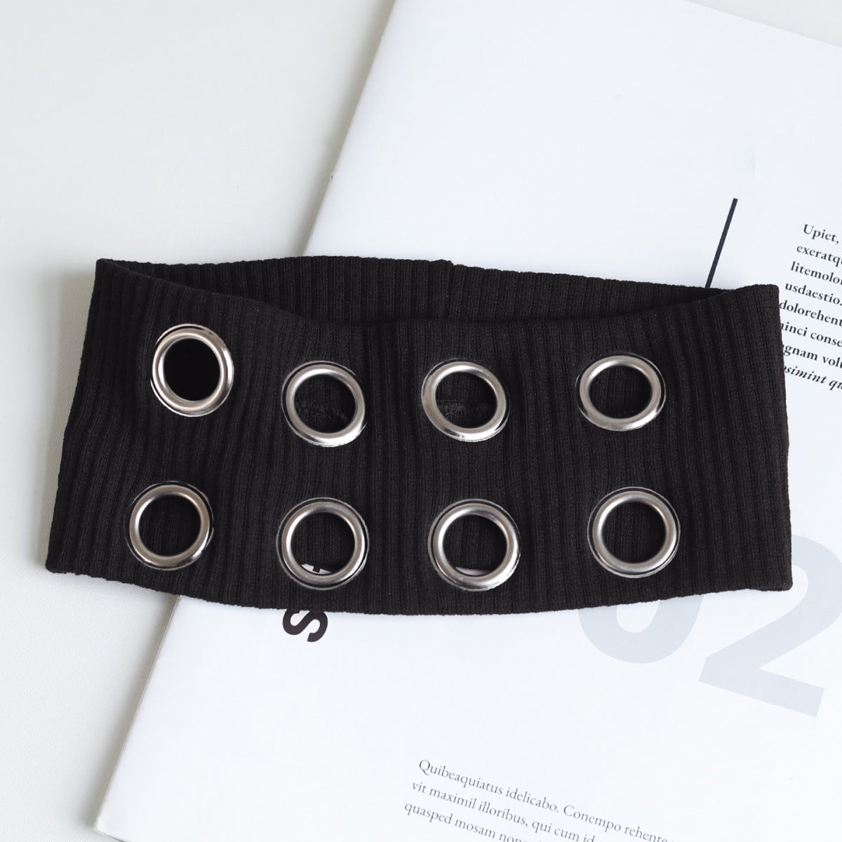 Hot Girl Metal Round Hole Hollow Out Elastic Ribbon Vintage Headwear