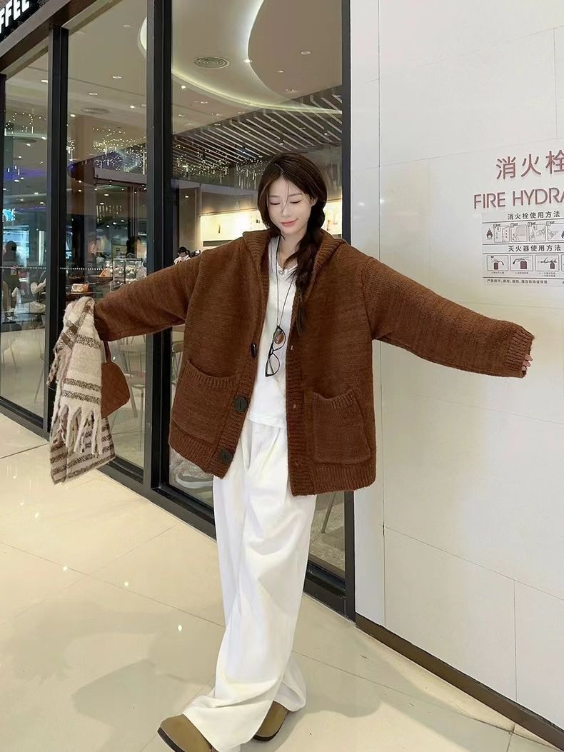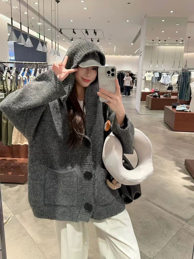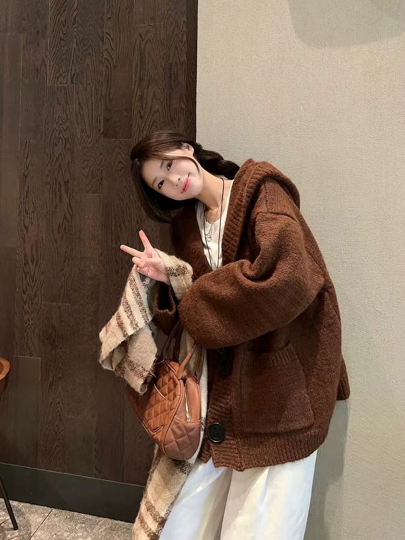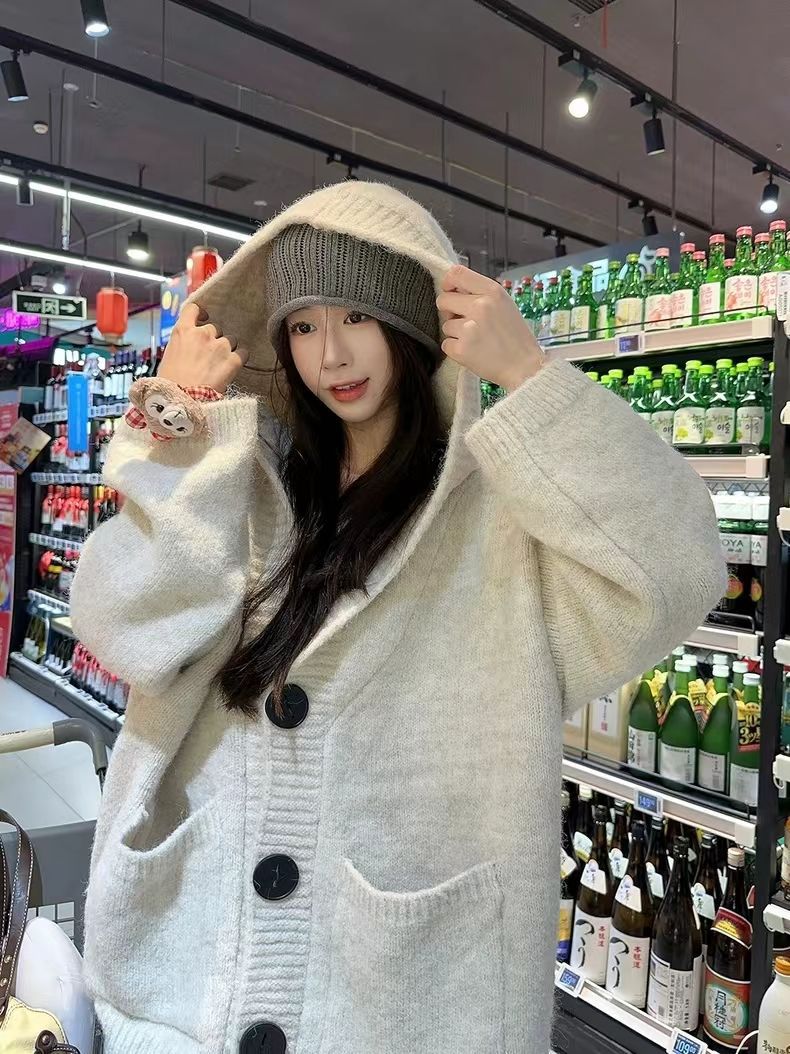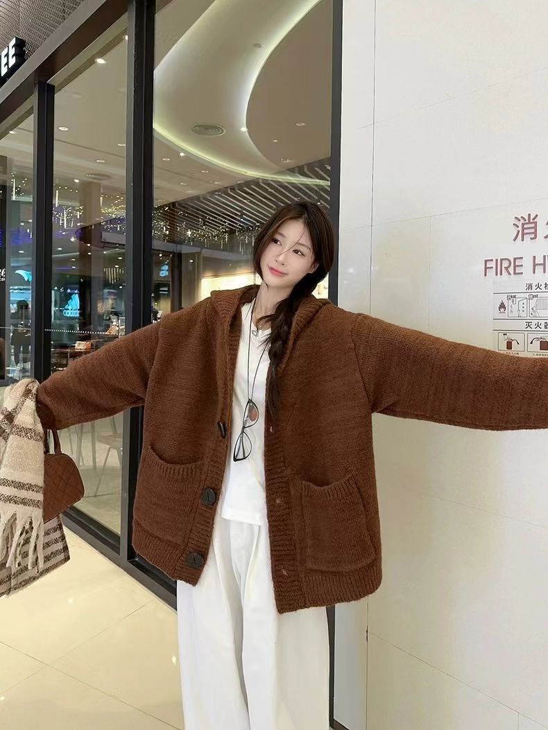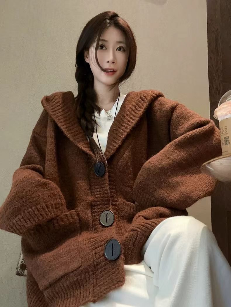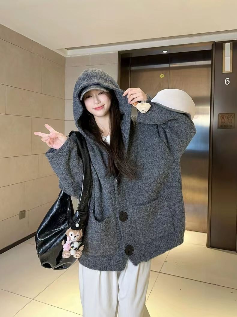 Idle Style Hooded Outer Wear Loose Soft Glutinous Sweater