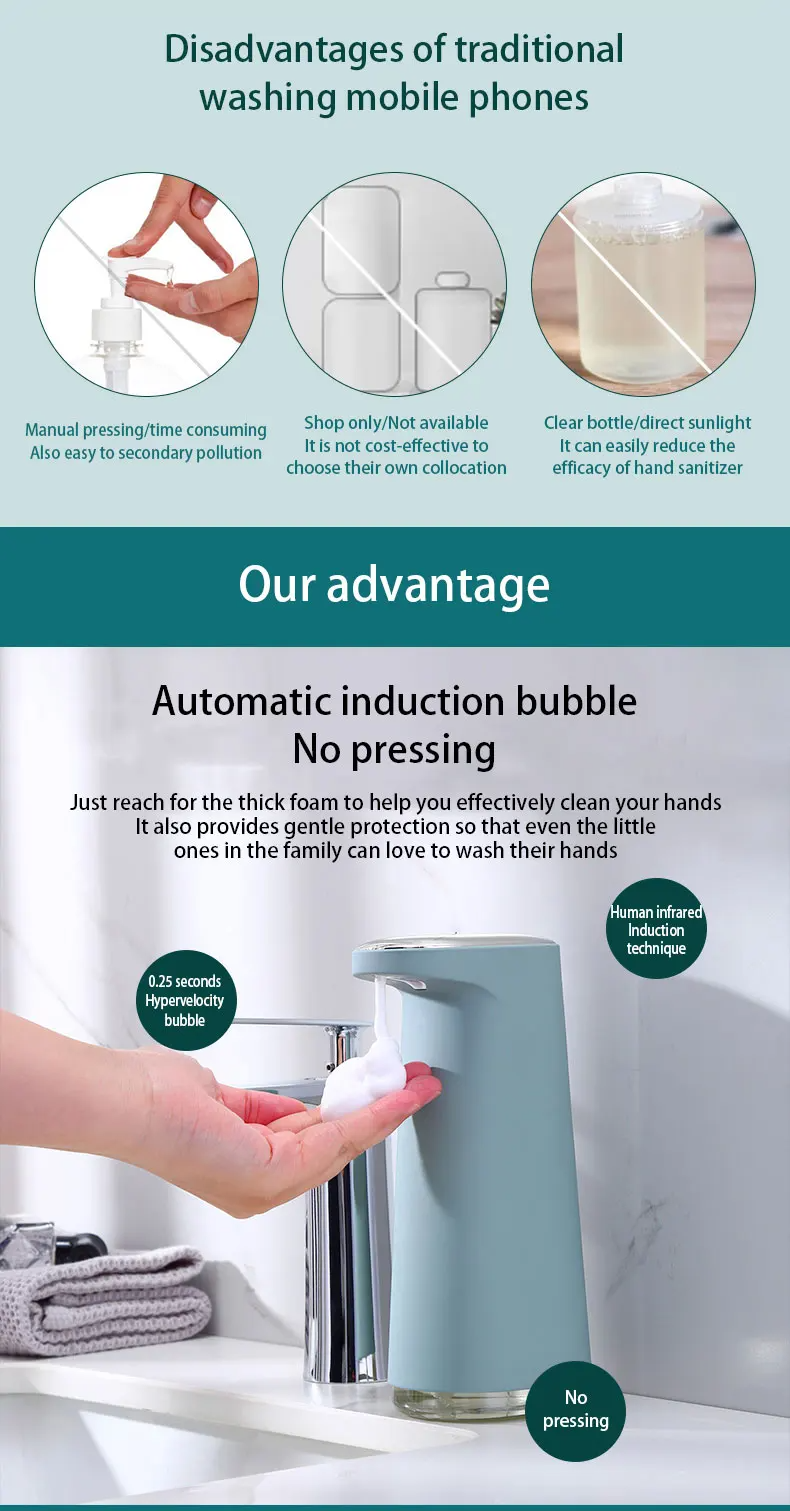 【Generous 450ml Capacity】: With a substantial 450ml capacity, our dispenser minimizes the need for frequent refills, providing extended usage and convenience for high-traffic areas or households.