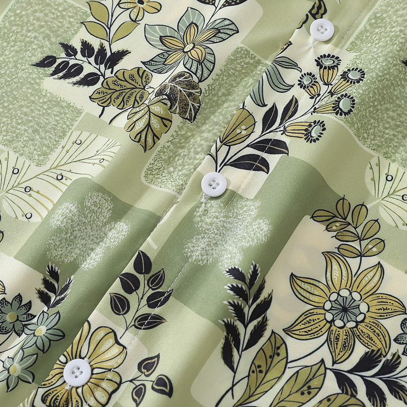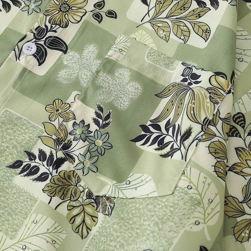 Japanese Retro Floral Full Print Long Sleeve Shirt For Men