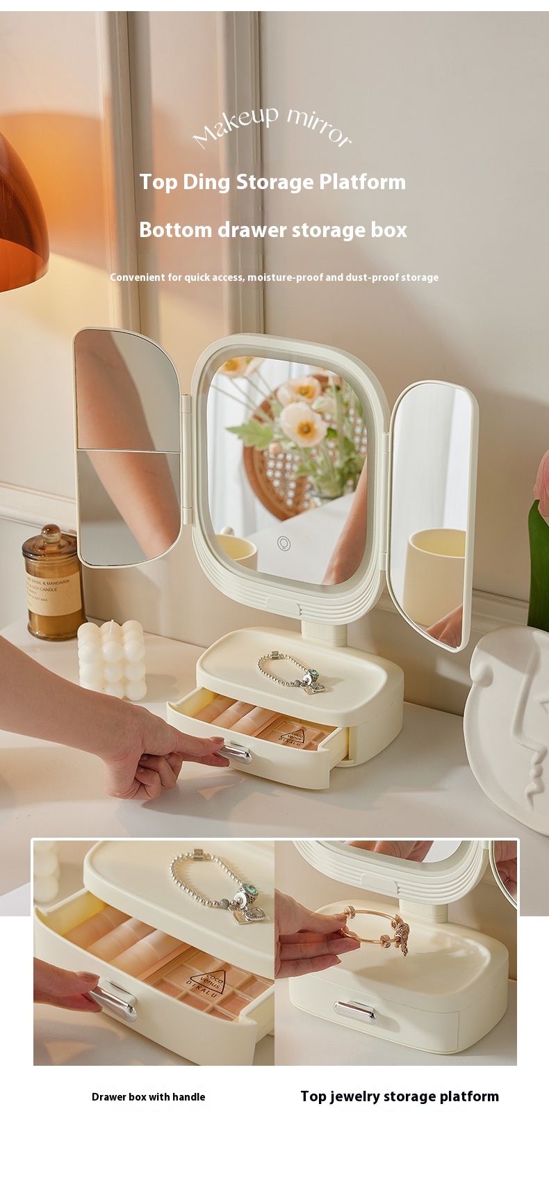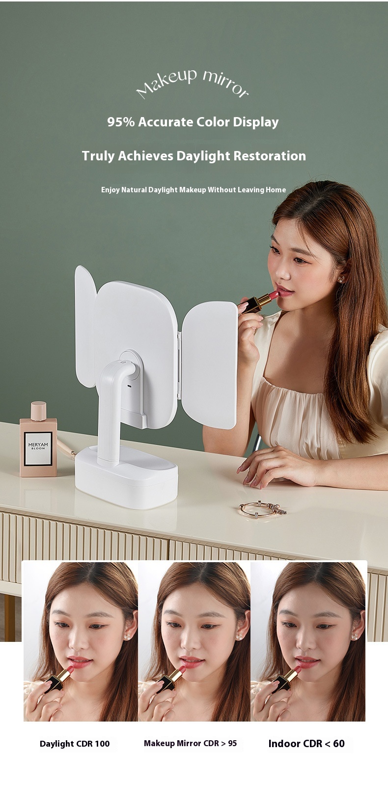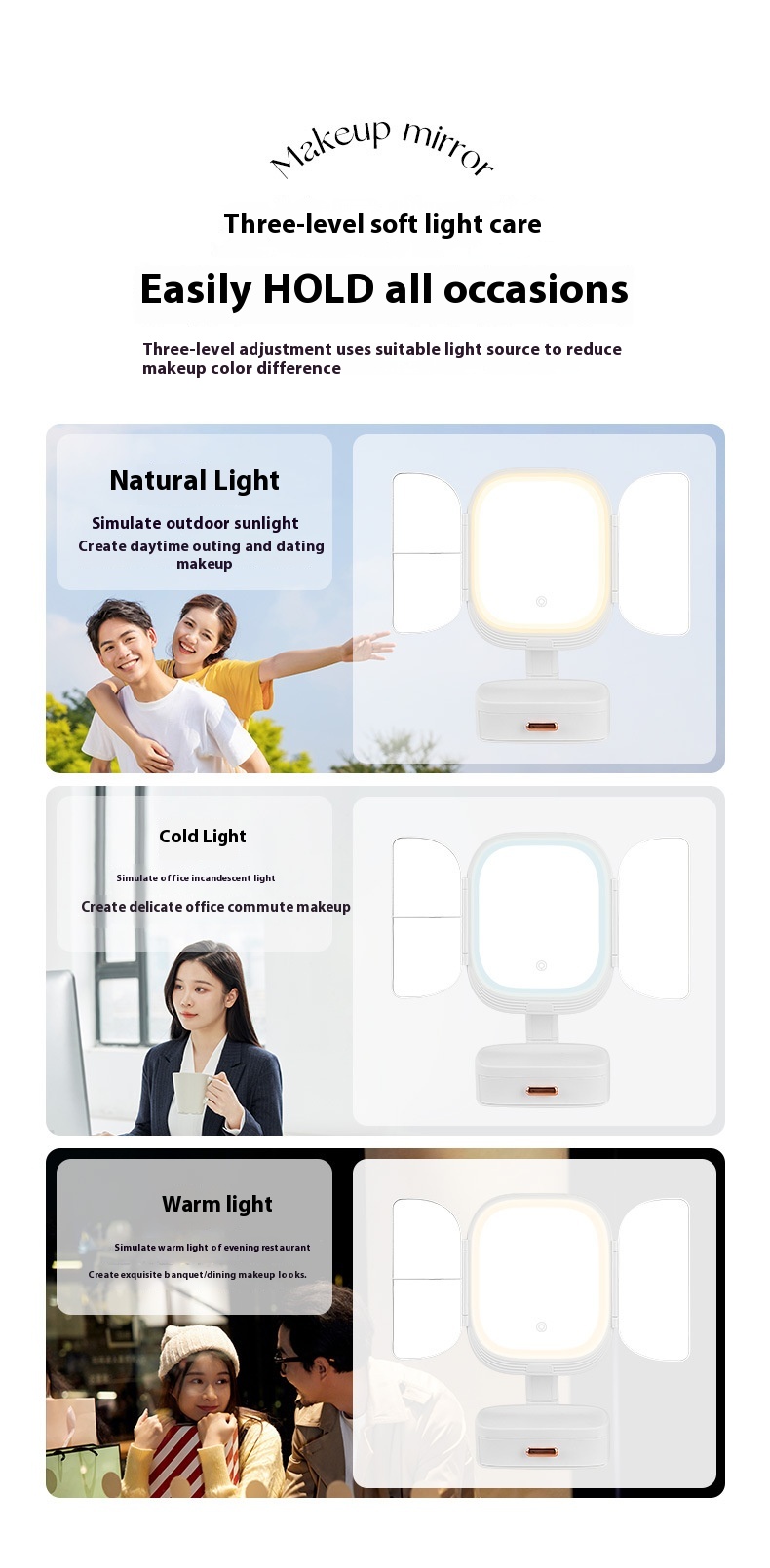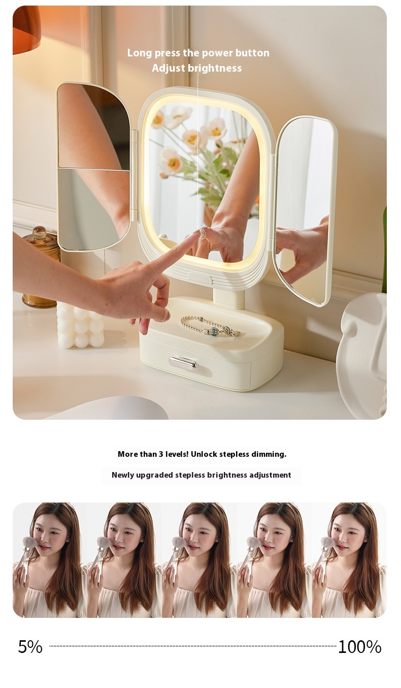 Led Desktop Cosmetic Mirror Household Foldable With Light
