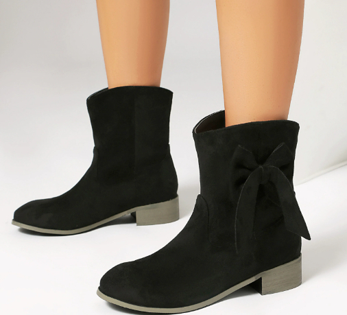 Low Heel Suede Large Size Sweet Bow Casual Boots