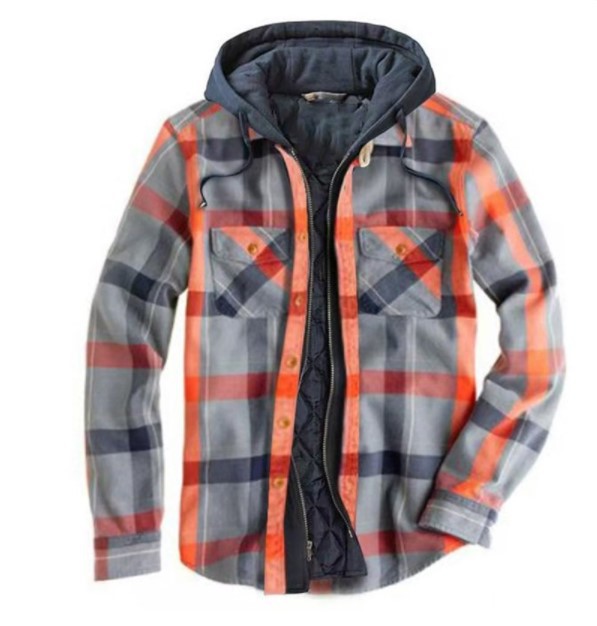 Men's Casual Checked Long Sleeve Hooded Jacket