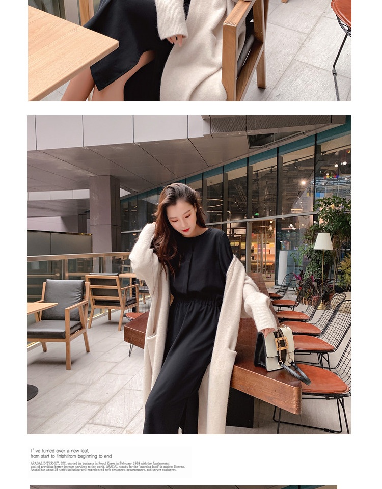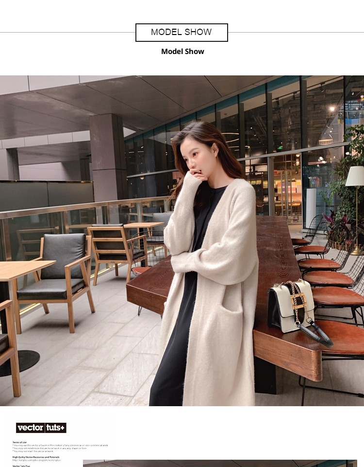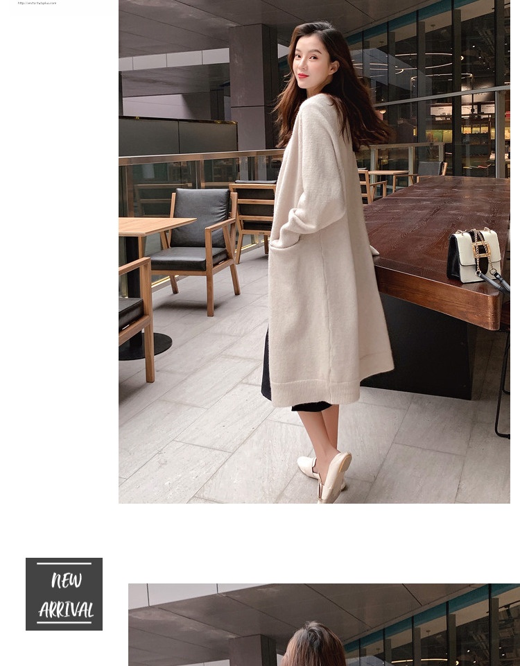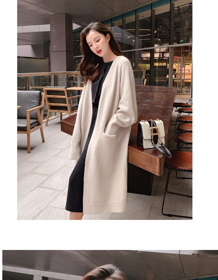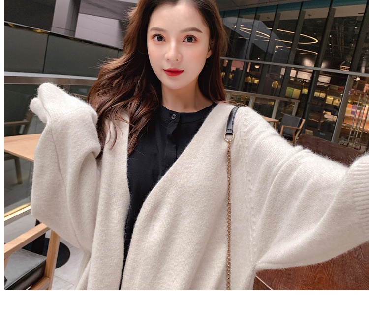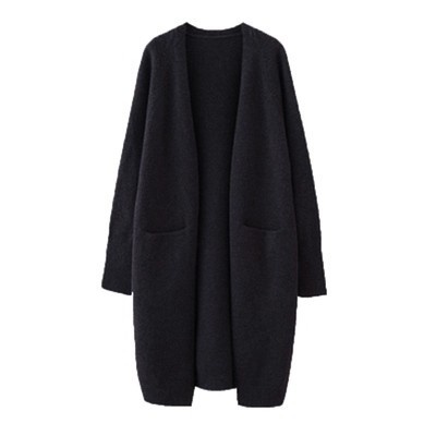 Mid-length Sweater Women's Solid Color V-neck Knitted Jacket
