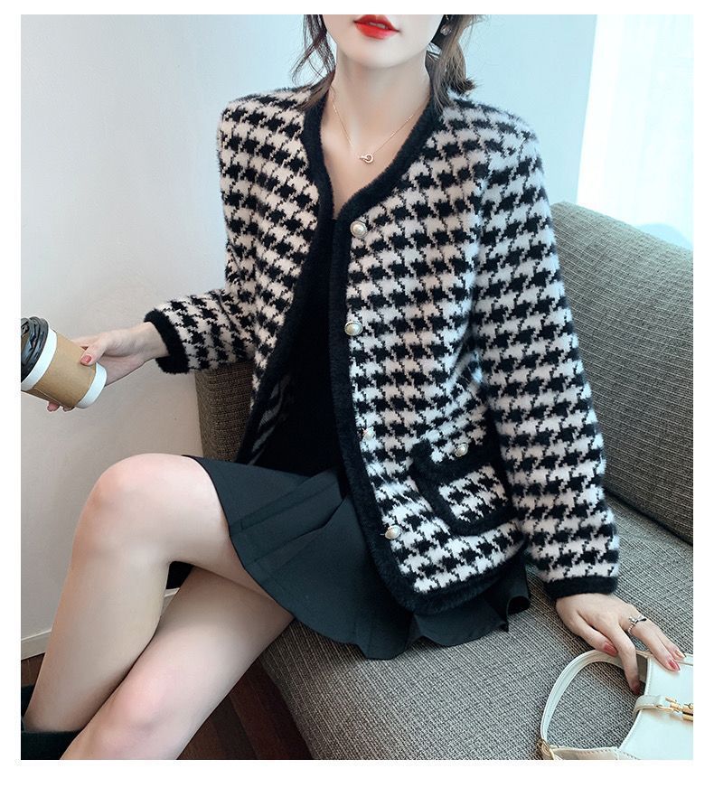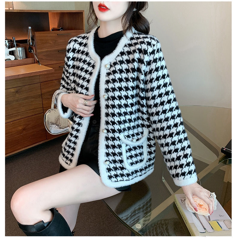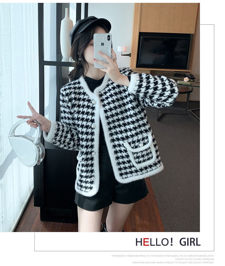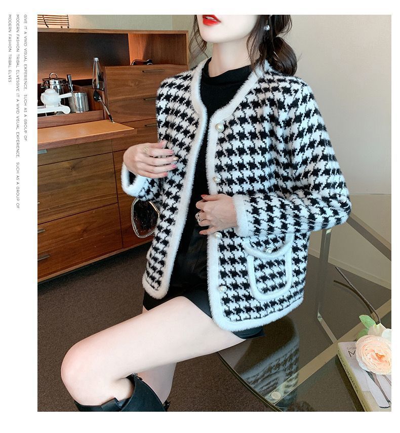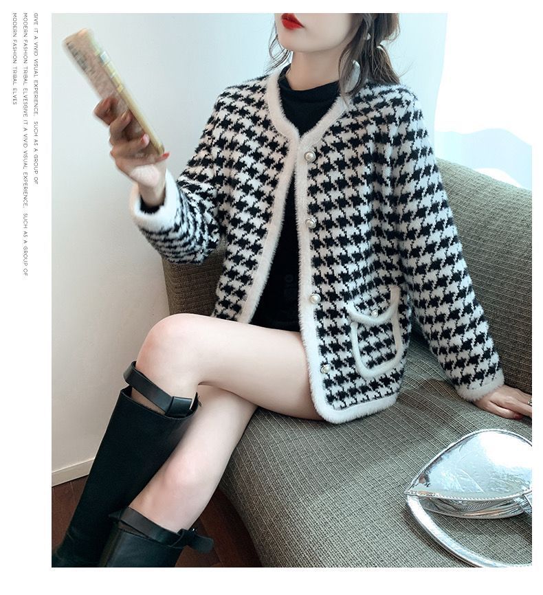 New Plaid Mink Velvet Coat Loose Flattering Knit Cardigan Sweater