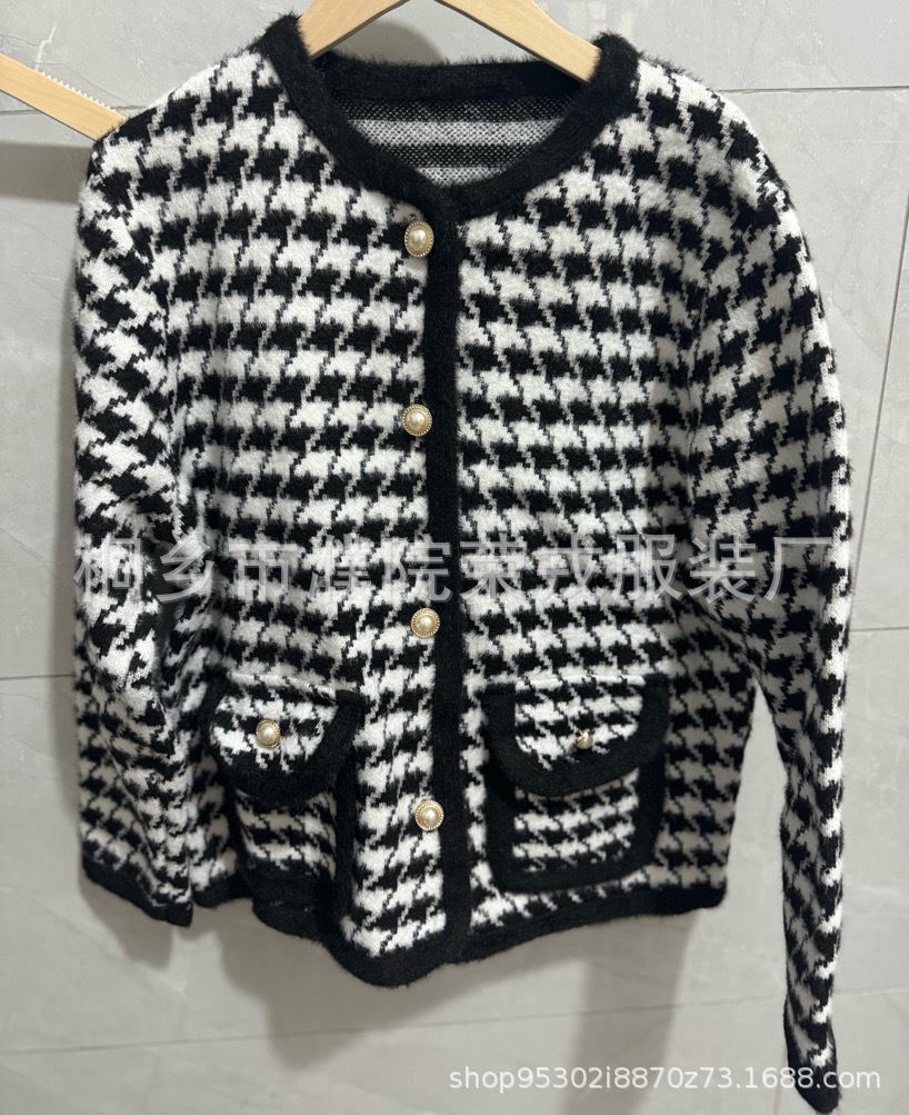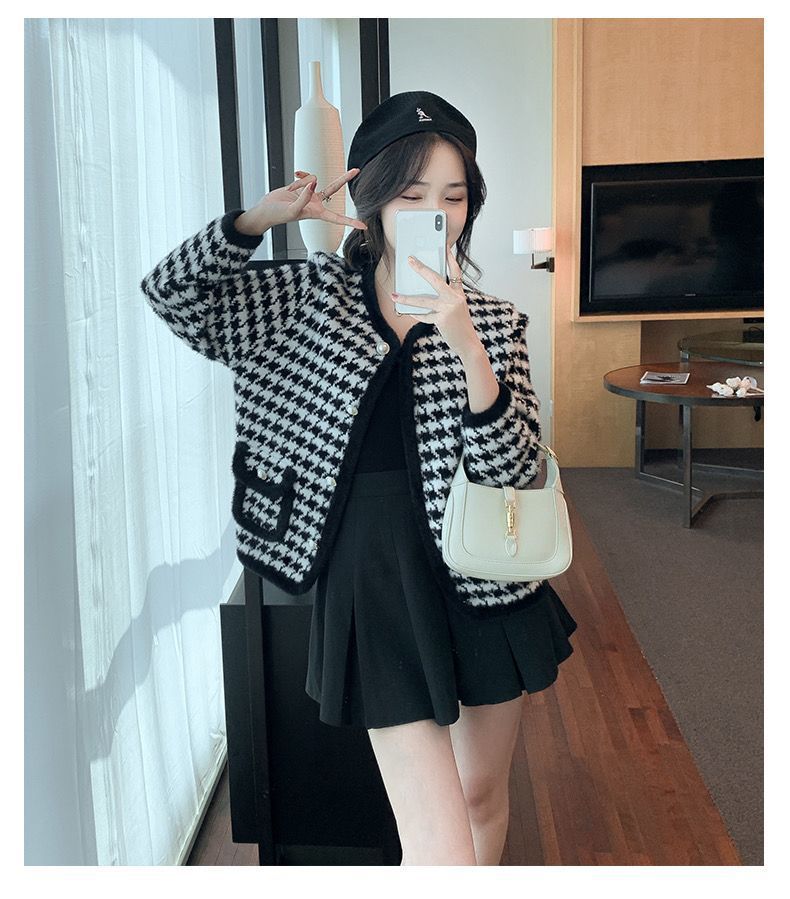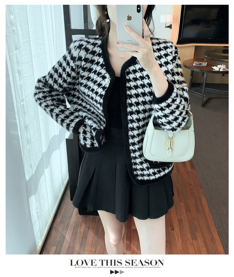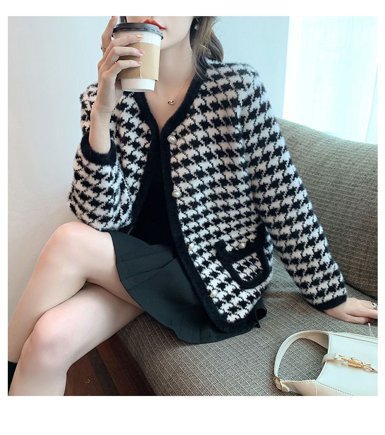 New Plaid Mink Velvet Coat Loose Flattering Knit Cardigan Sweater