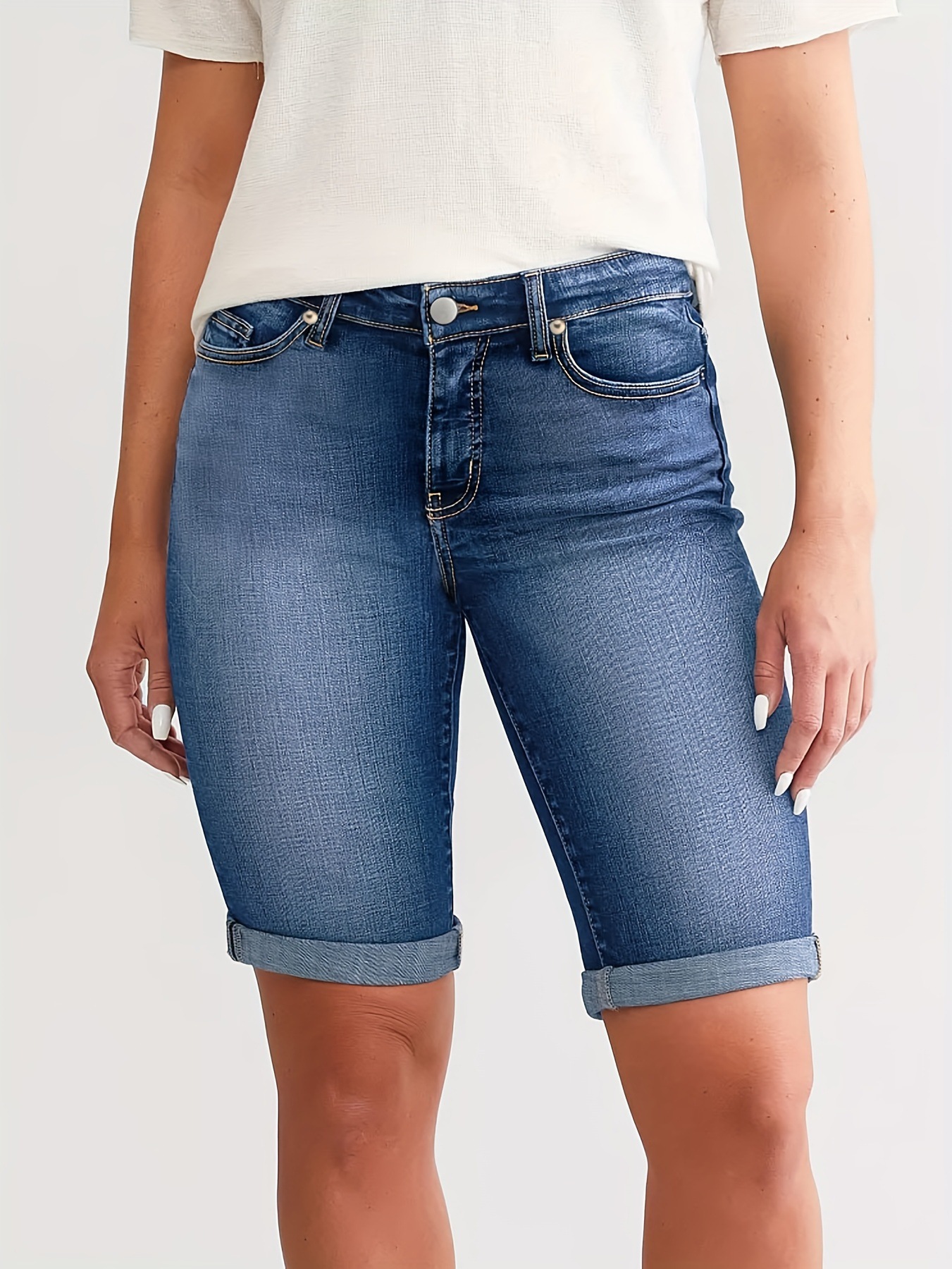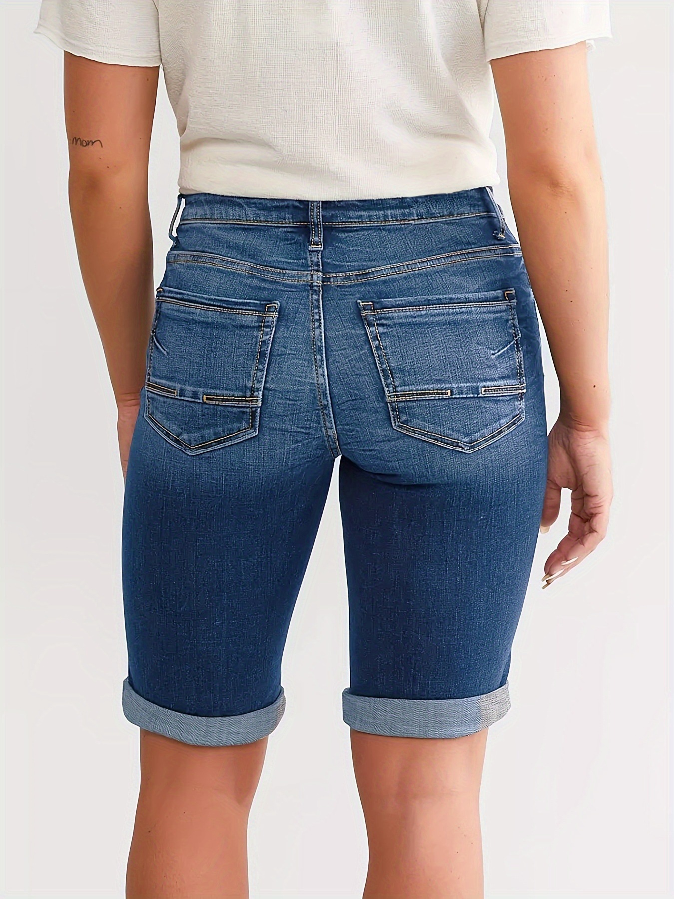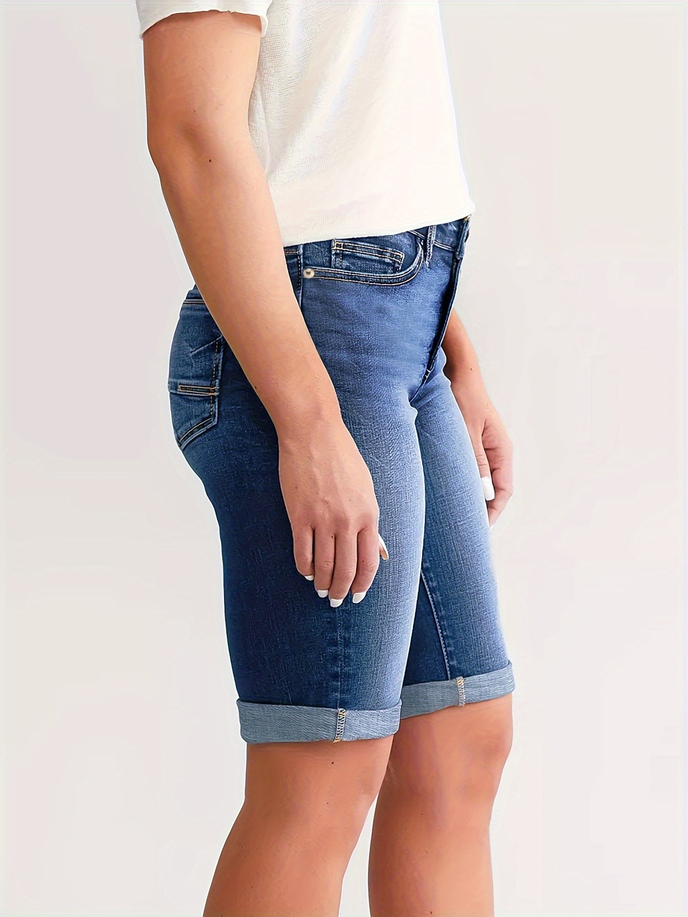 New Women's Slim Fit All-match Foot Button Denim Shorts