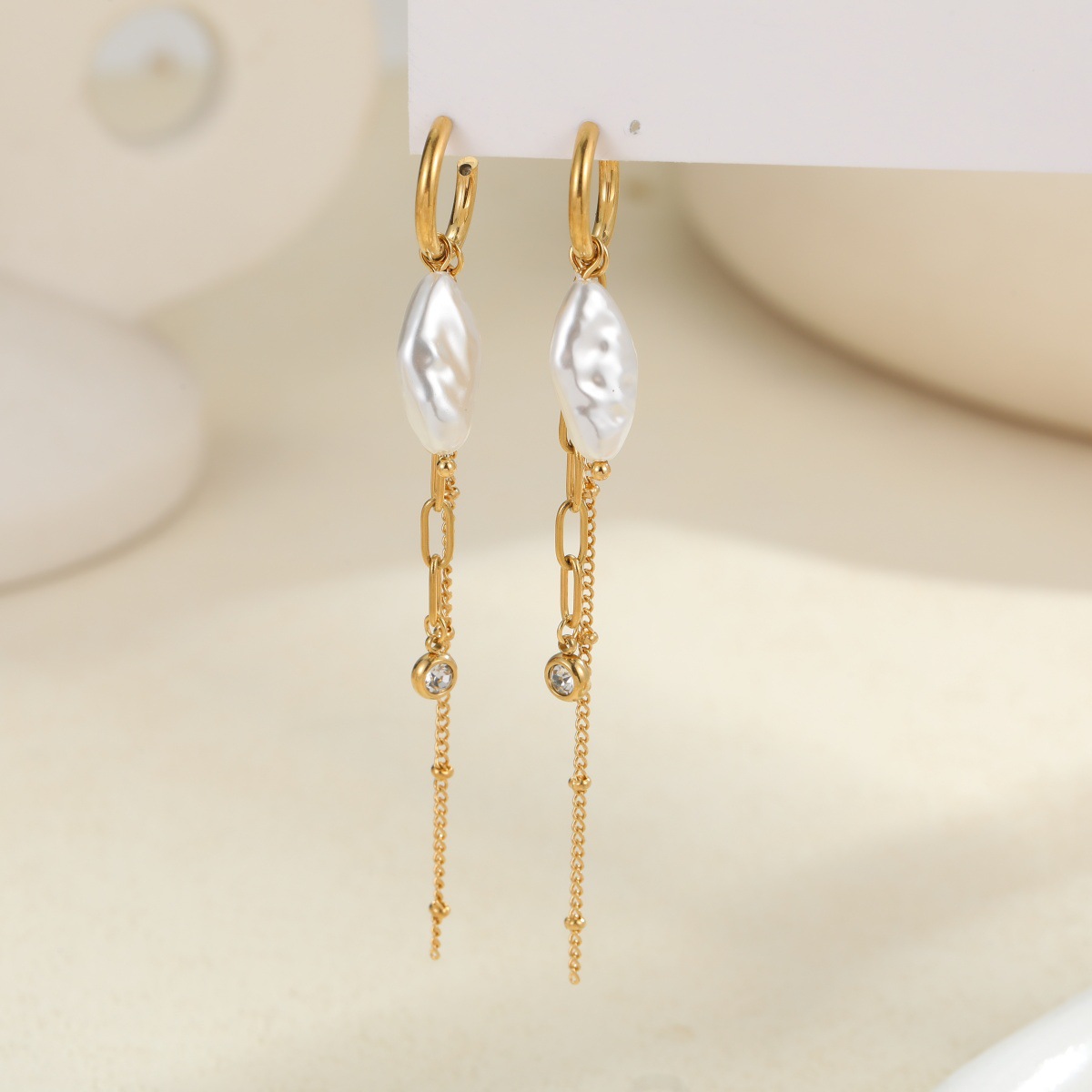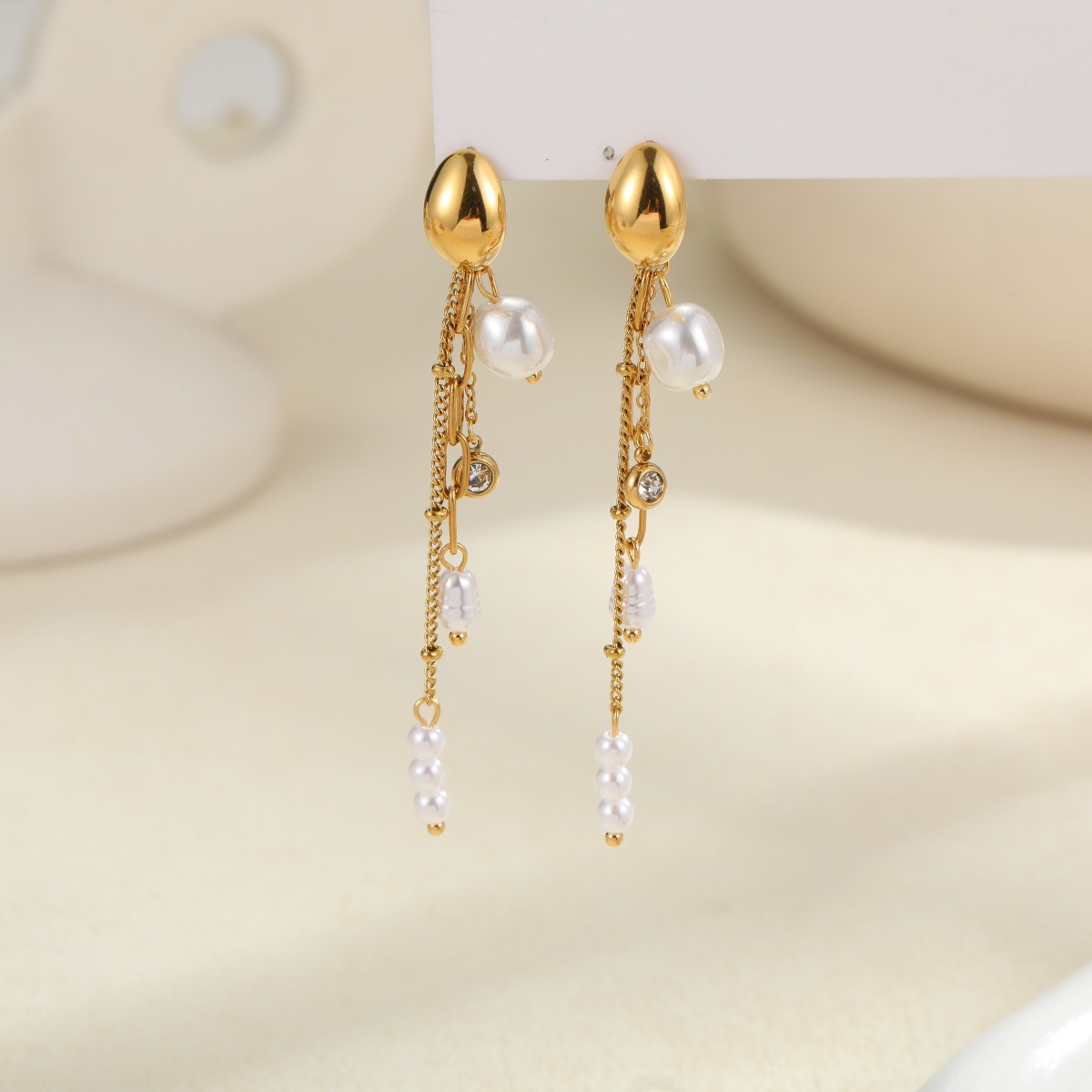 Pearl Earrings Long Tassel Stainless Steel Earrings Design Earrings