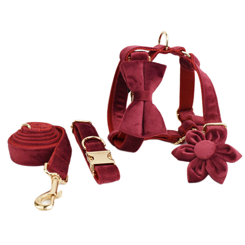 Color: dog leash, dog rope, bow, flowers, dog vest, dog poop bag