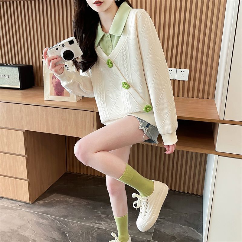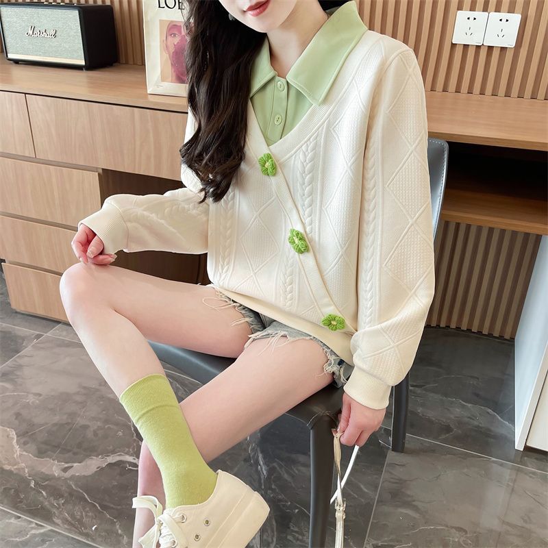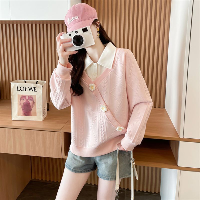 Plus Size Fake Two Pieces Sweater Women's Design Sense