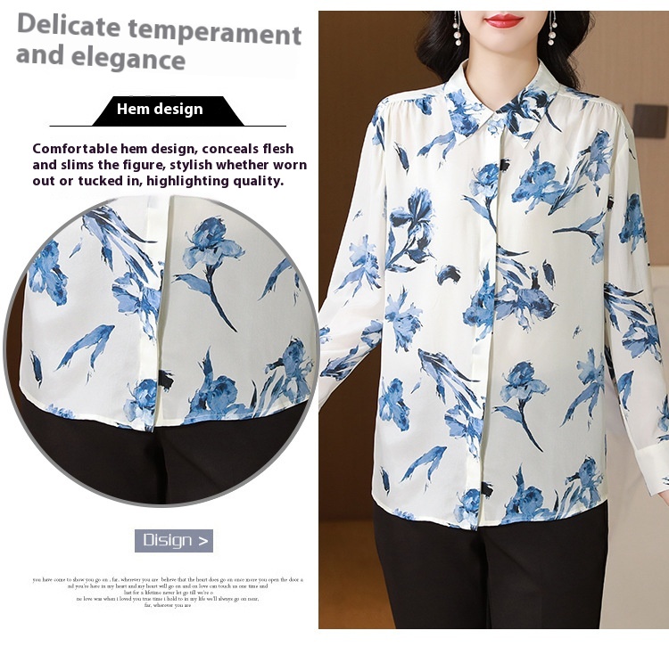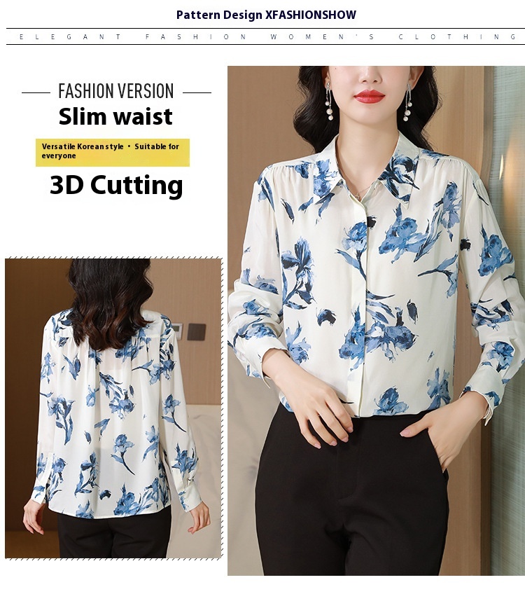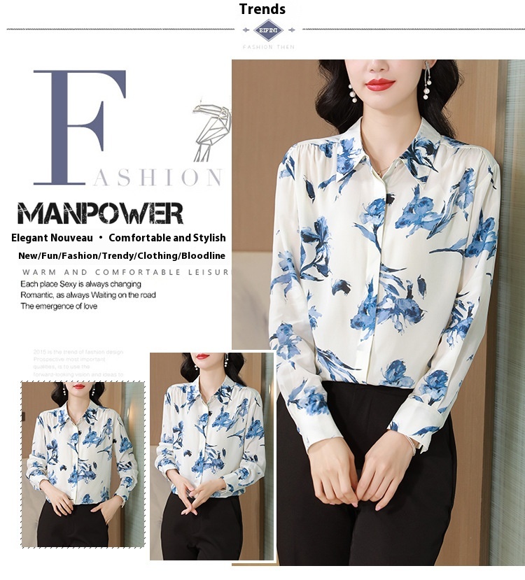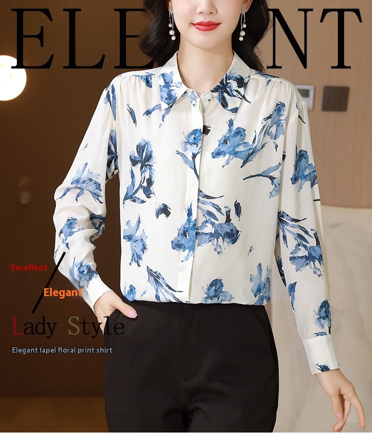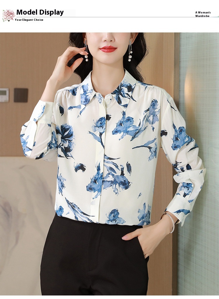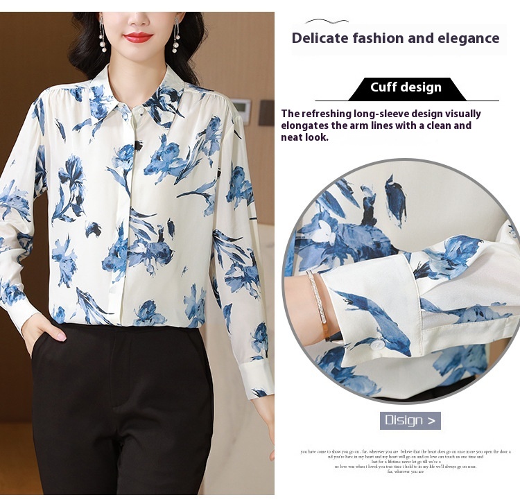 Polyester Women's Long Sleeve Loose Printed Shirt