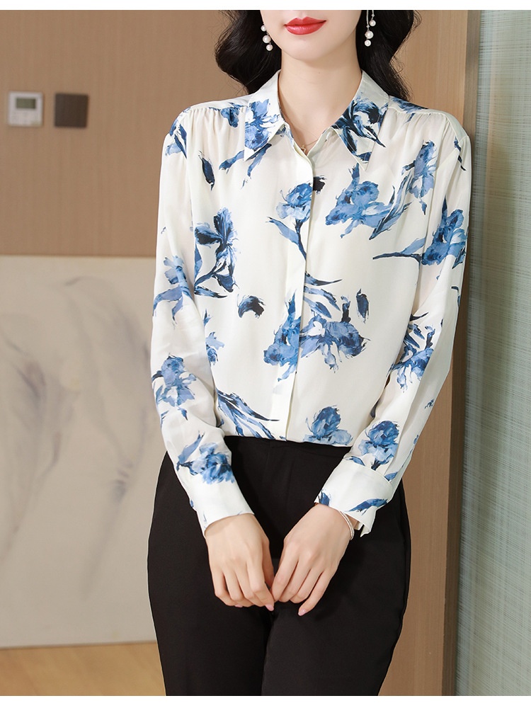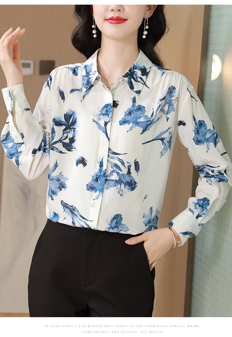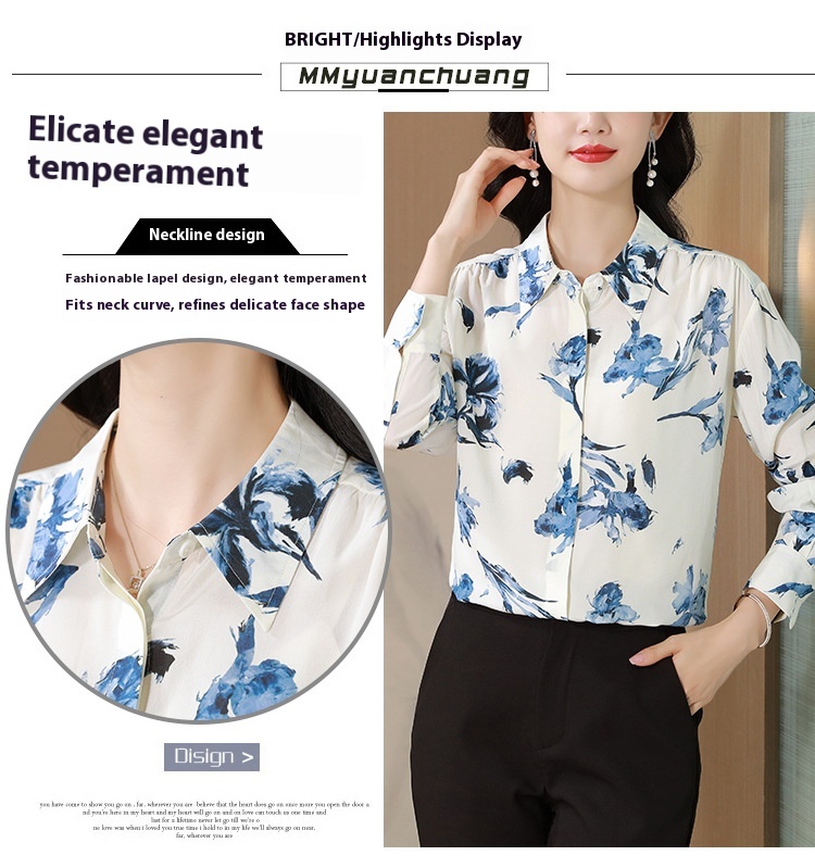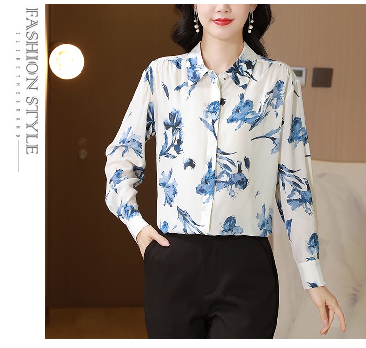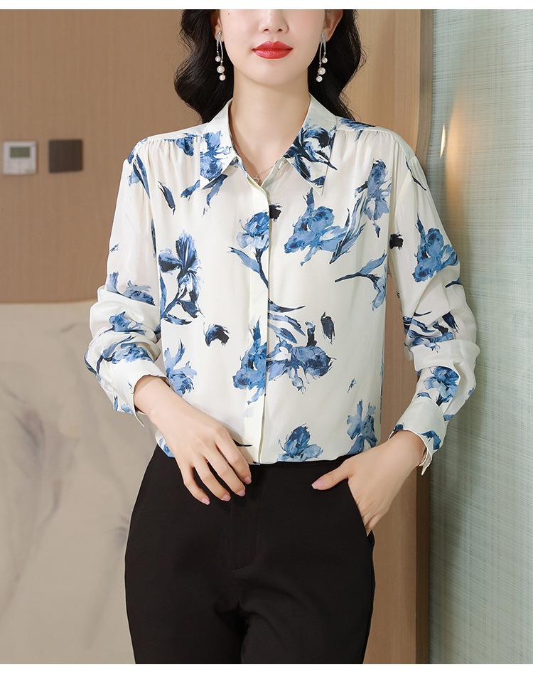 Polyester Women's Long Sleeve Loose Printed Shirt
