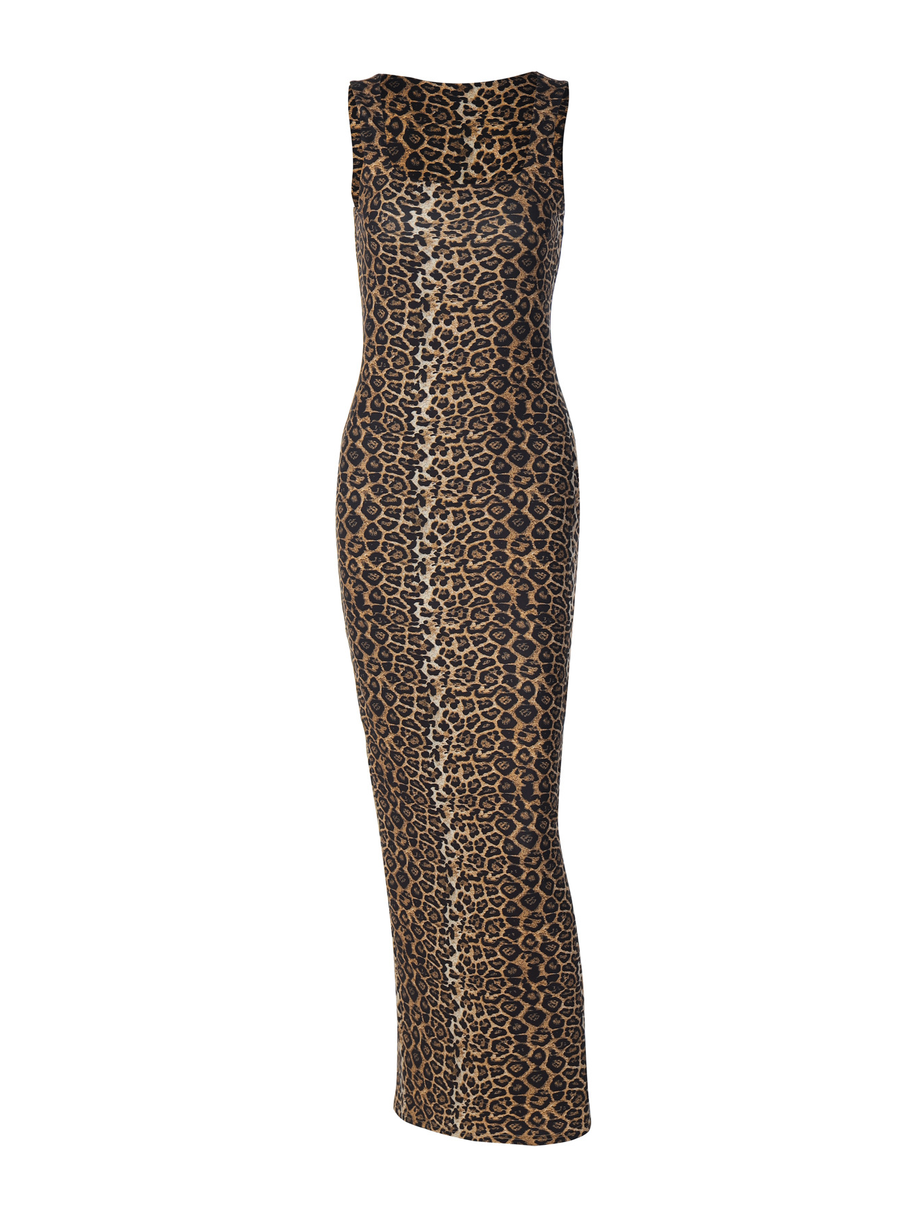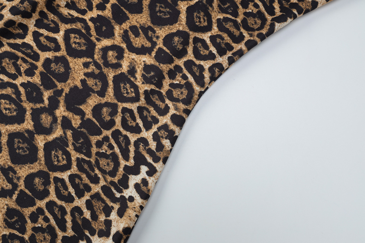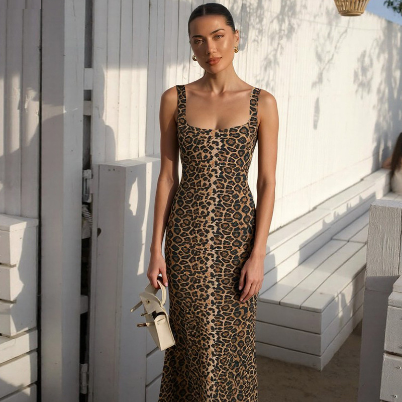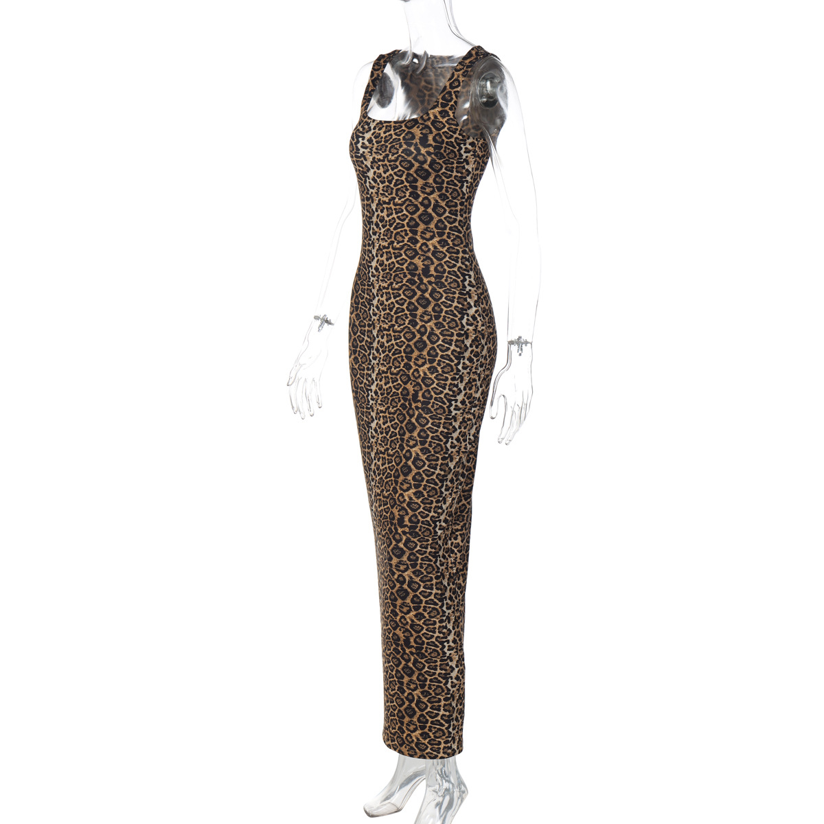 Printed Waist-controlled Stretch Split Sheath Leopard Print Dress