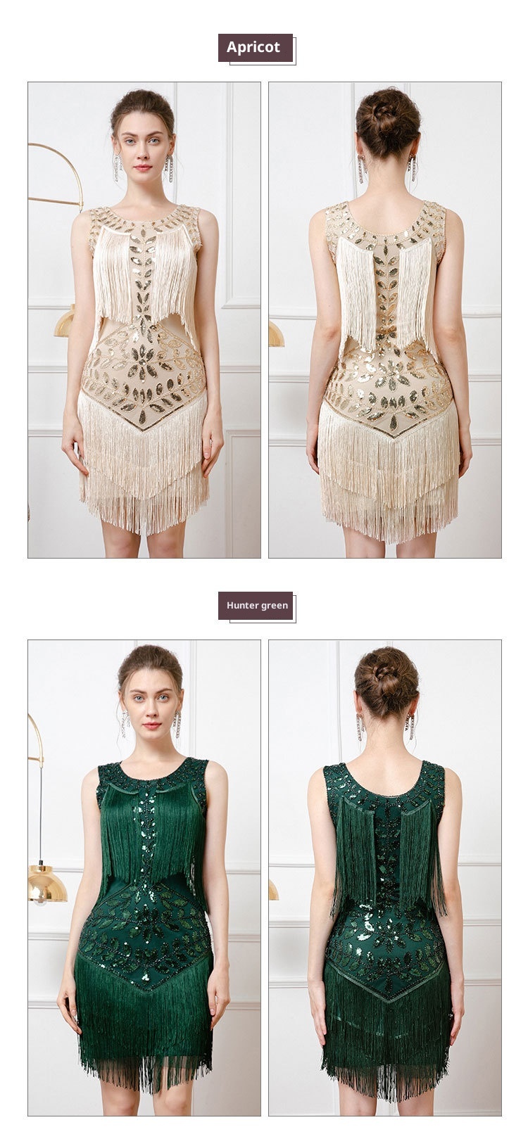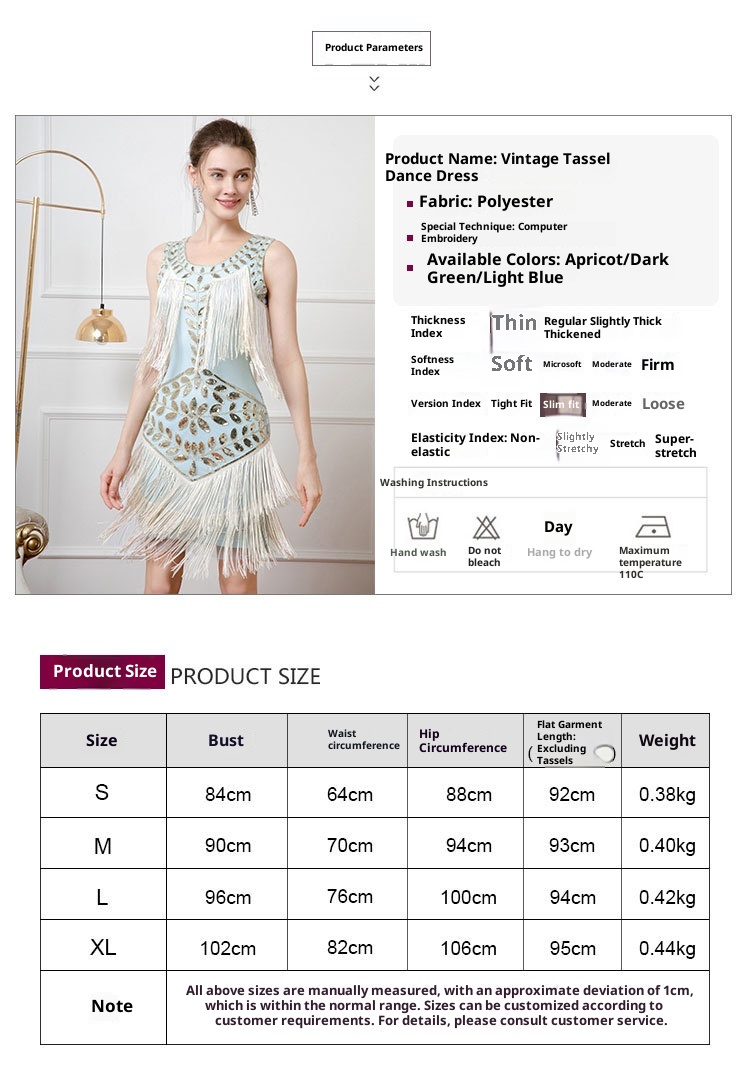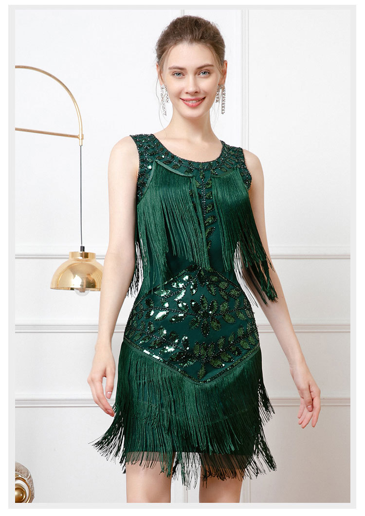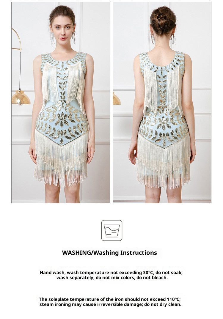 Retro Dance Sequined Vest Round Neck Pearl Embroidery Tassel Dress