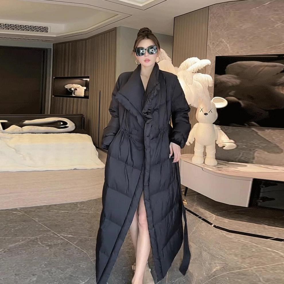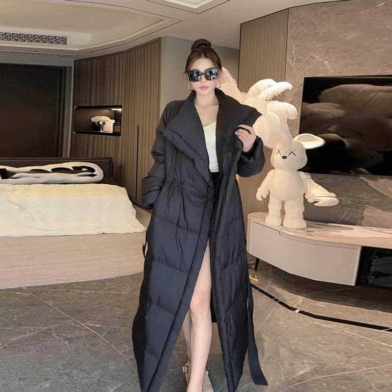Retro Elegant Lapel Long Lace Up Down Cotton-padded Jacket