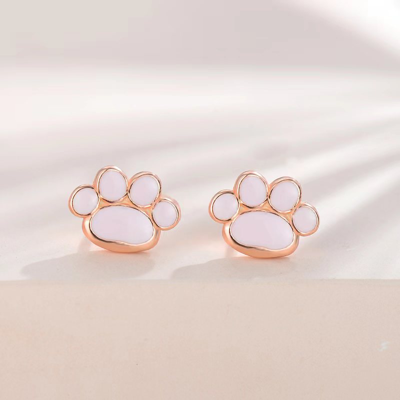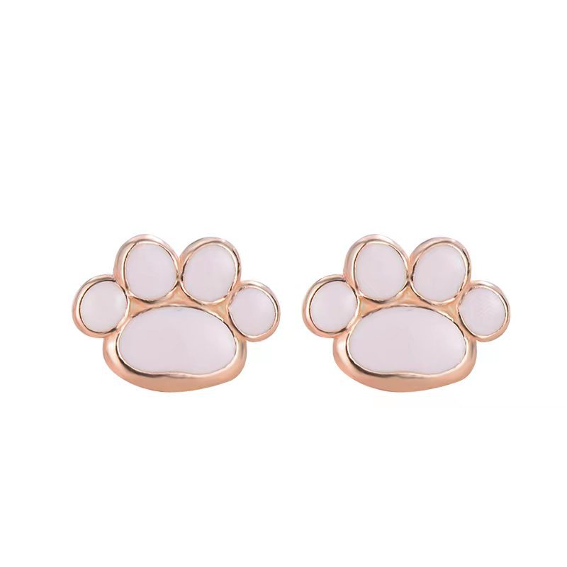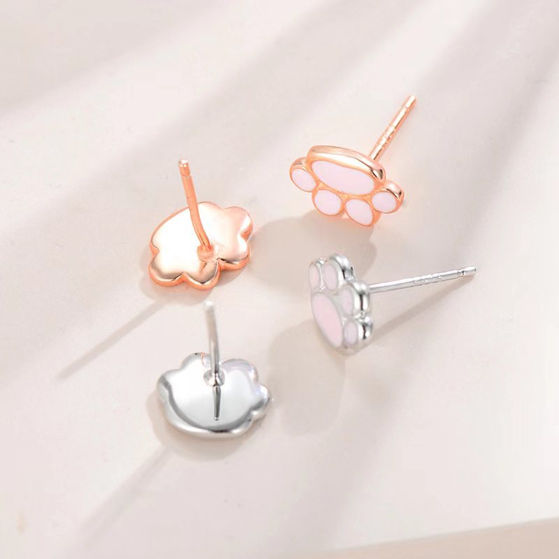 S925 Milk Gas Cat's Paw Ear Studs Simple