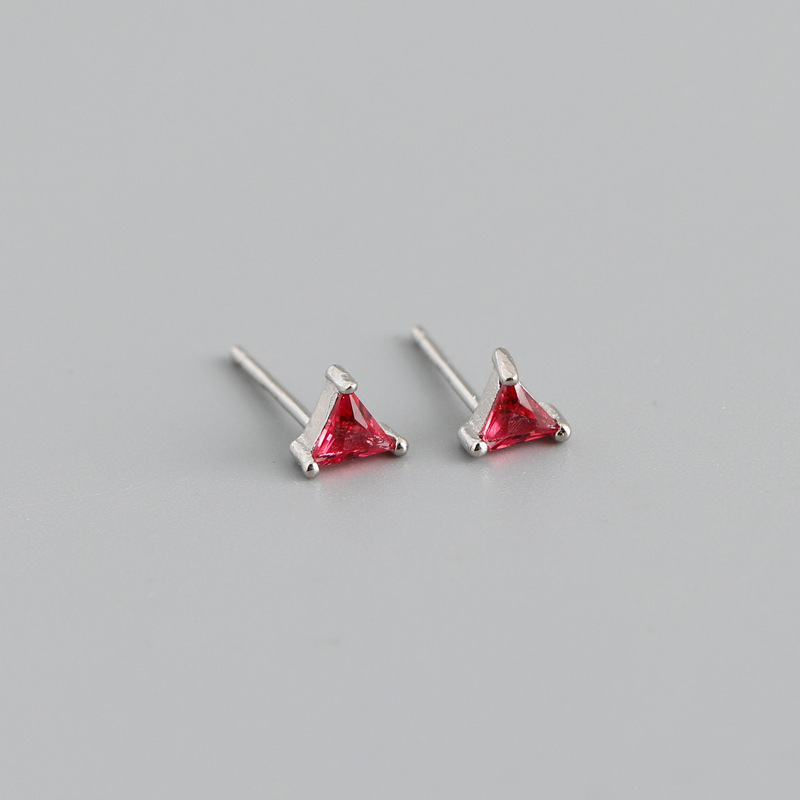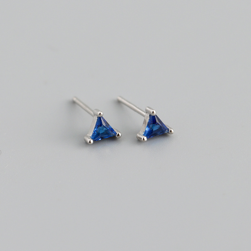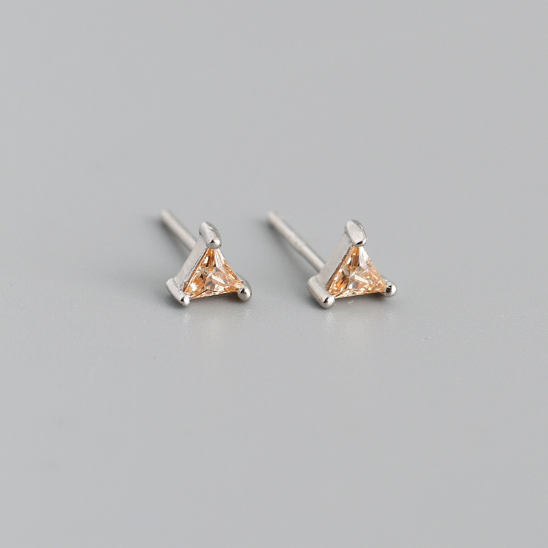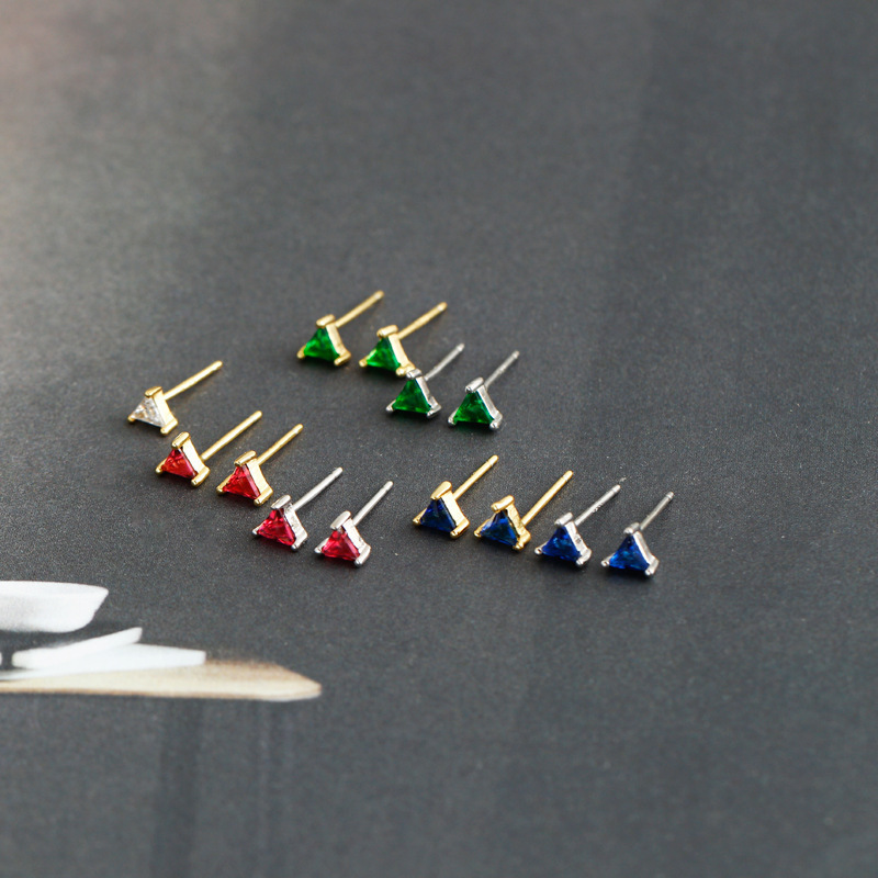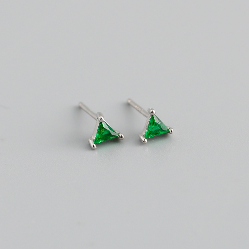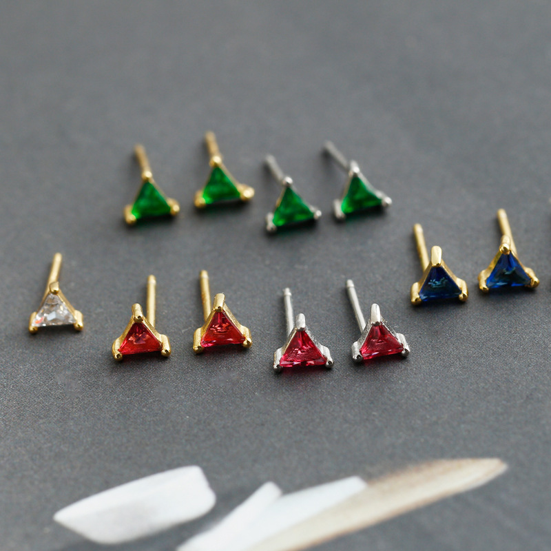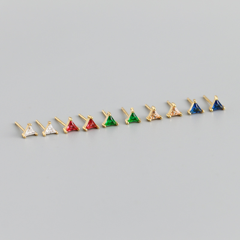 Simple Triangle Color Zircon Stud Earrings S925 Silver