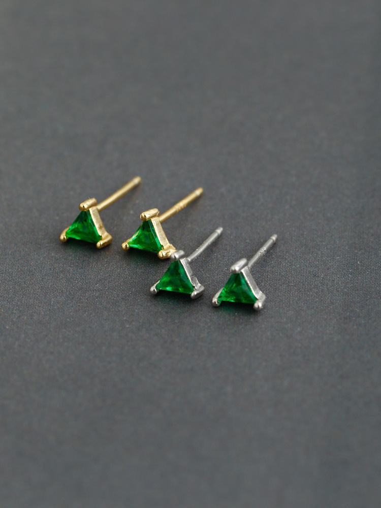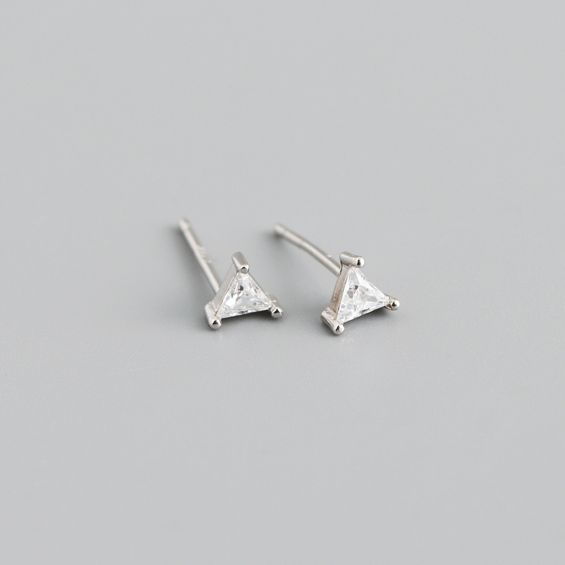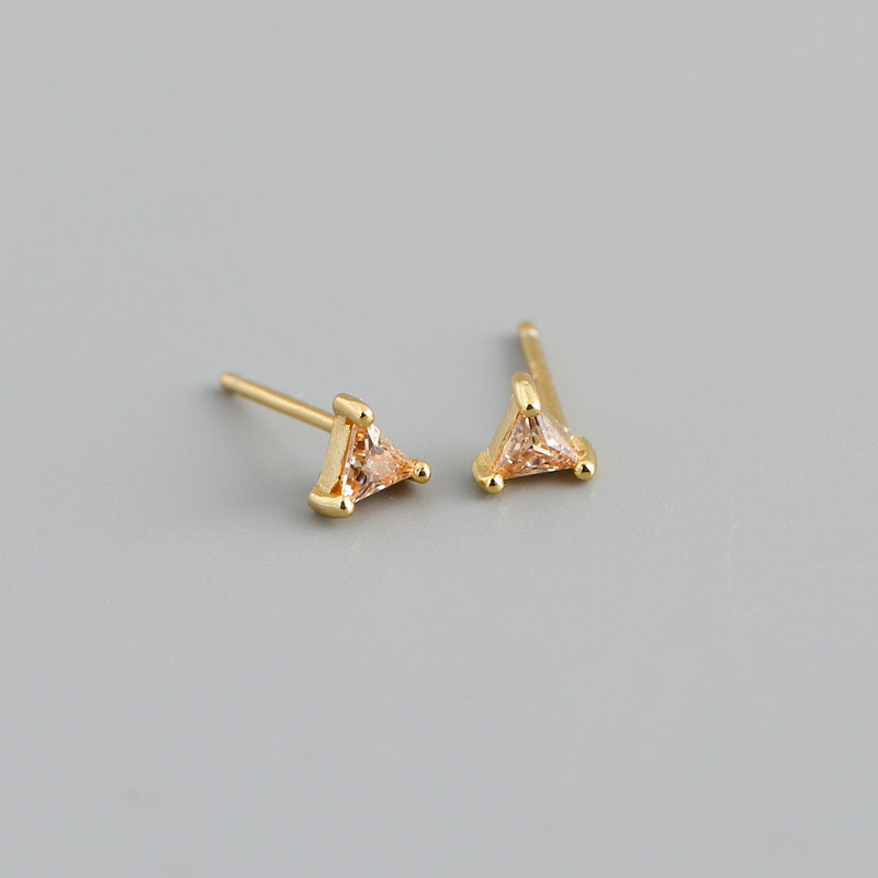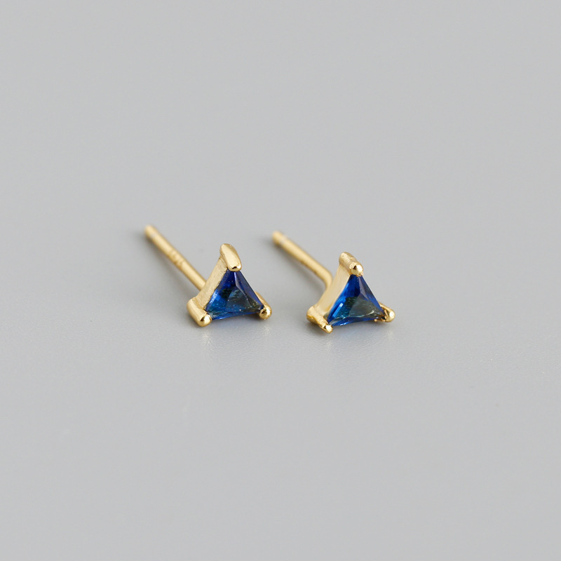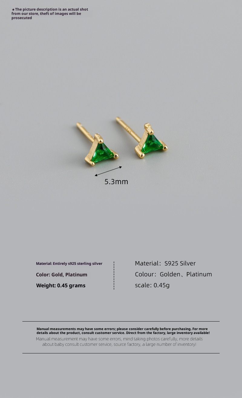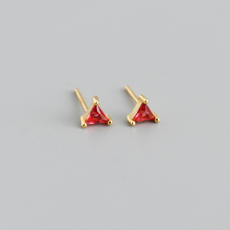 Simple Triangle Color Zircon Stud Earrings S925 Silver