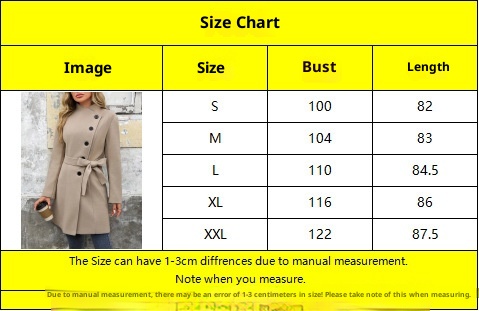 Single-breasted Button-up Tie-neck Stand Collar Warm Woolen Coat, Woolen Trench Coat Jacket