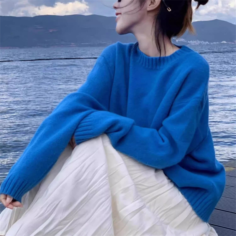 Soft Glutinous Thick Round Neck Knitwear Korean Style