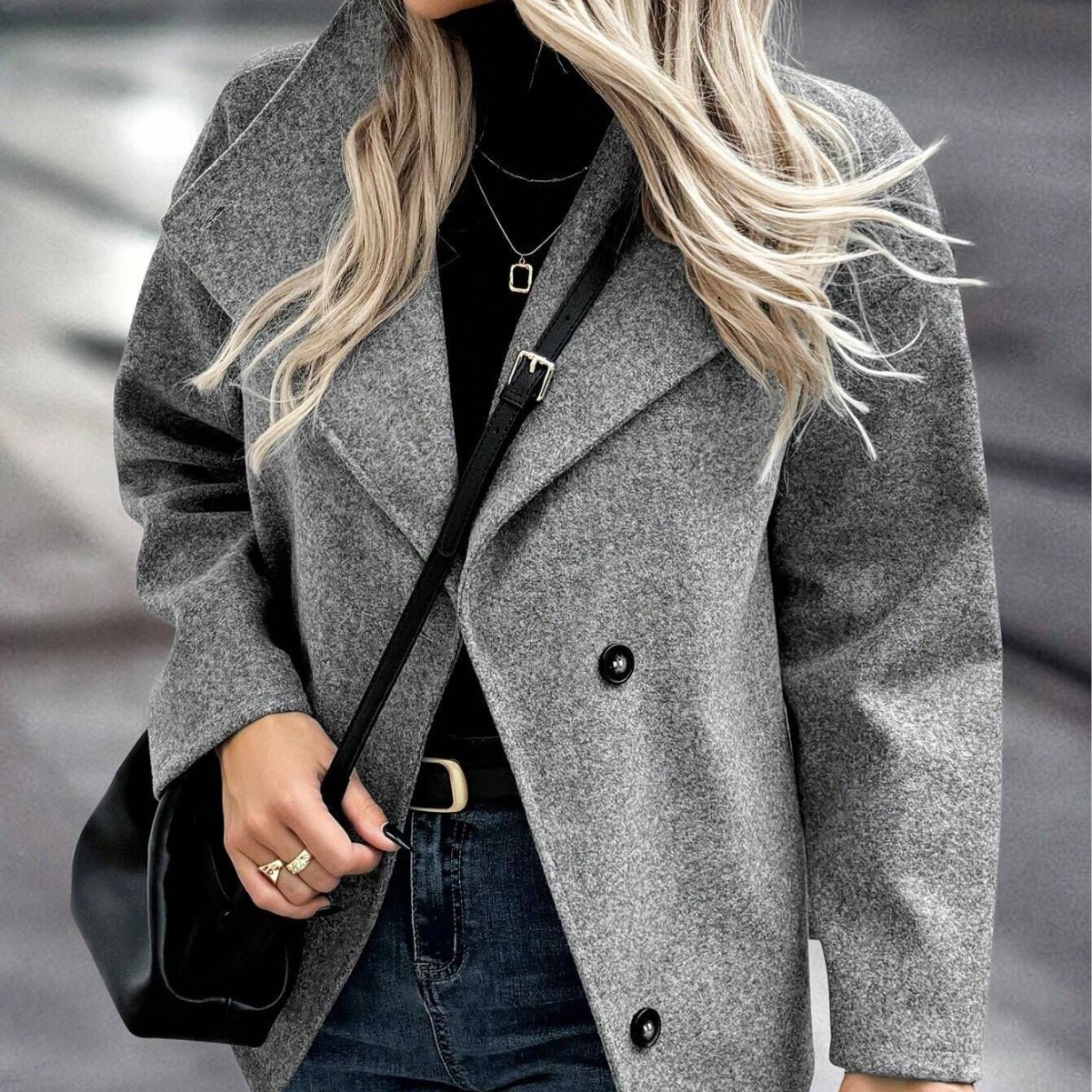 Stand Collar Single-breasted Loose Woolen Coat
