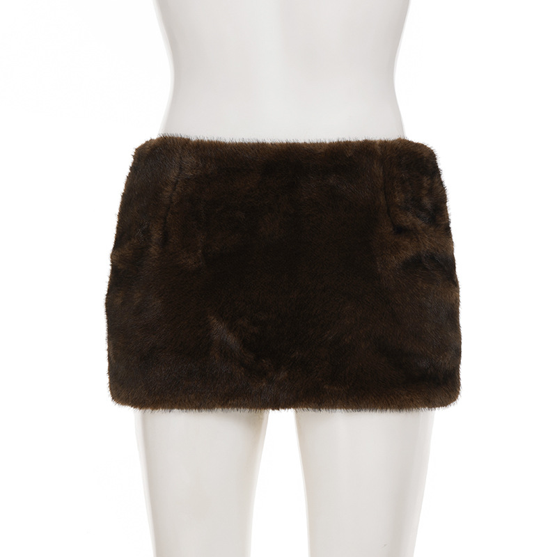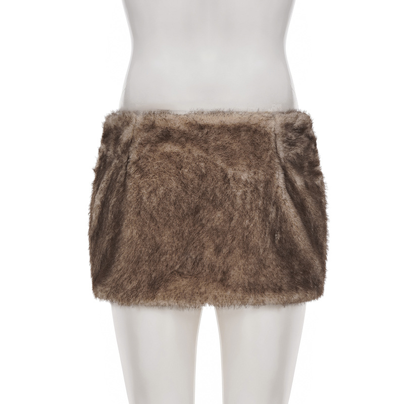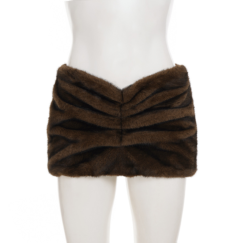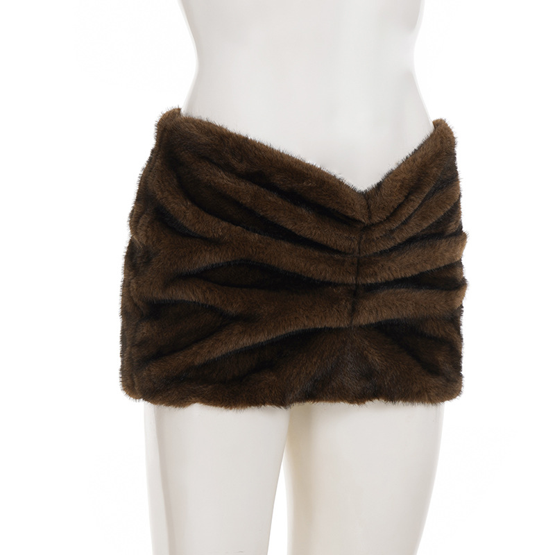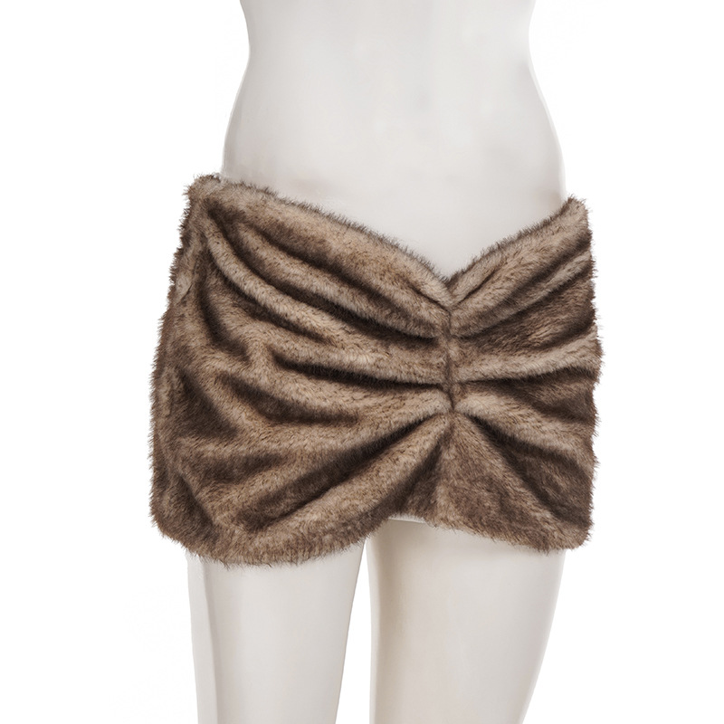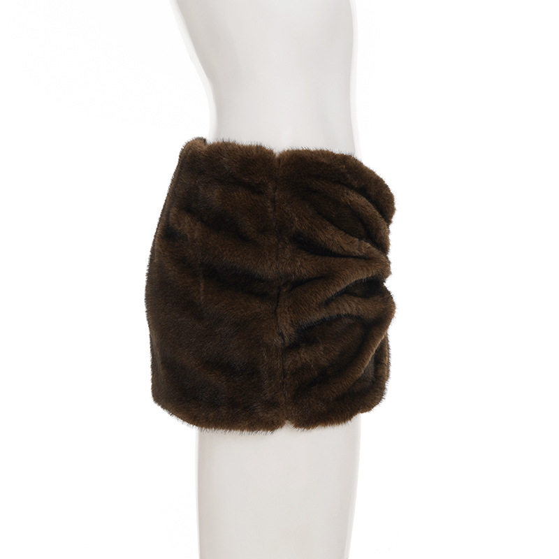 Street Hipster Side Pleated Low Waist Hot Girl Fur Sheath Skirt